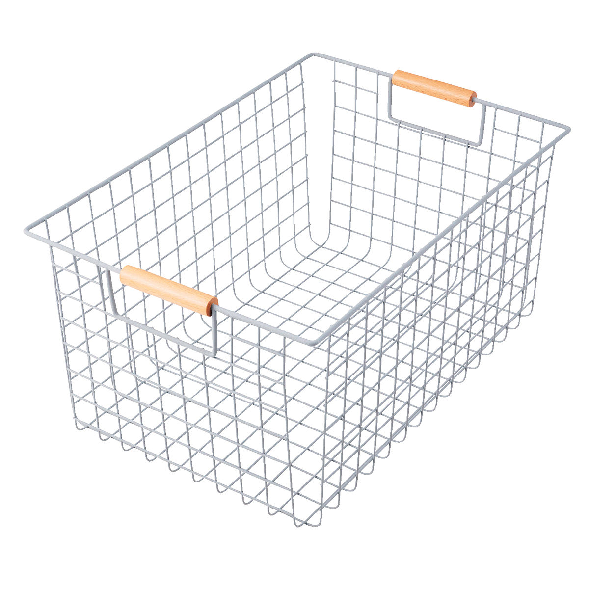天然木の持ち手とスチールのワイヤーフレームを組み合わせた、無駄のない洗練されたデザインのワイヤーバスケットです。 置くだけで空間をすっきり心地よく整えます。日用品の整理からランドリー、キッチン、リビング収納まで幅広く活躍し、生活感を抑えながら使い勝手の良さも叶えるアイテムです。