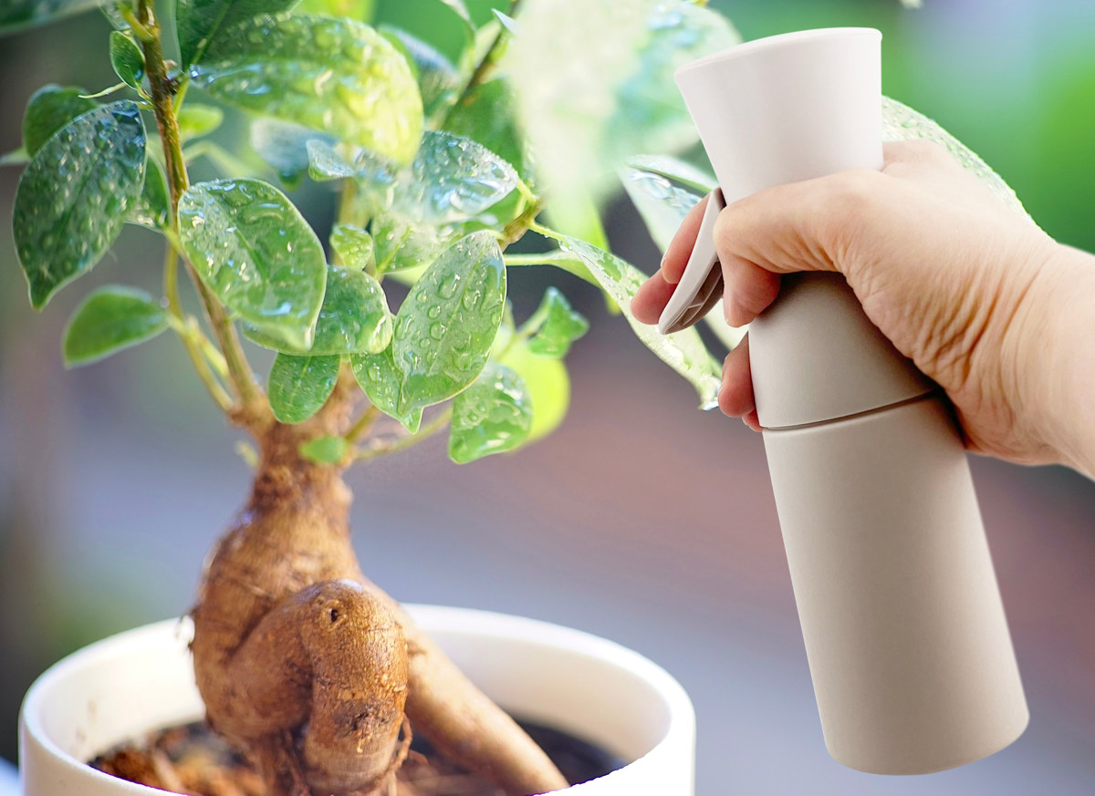 細かいミストを噴霧するスプレーボトルです。シックなマット系のデザインが美しく、お部屋の雰囲気に自然に馴染みます。植物の葉水ケアはもちろん、除菌や掃除にもこの1本で完了する便利なアイテムです。