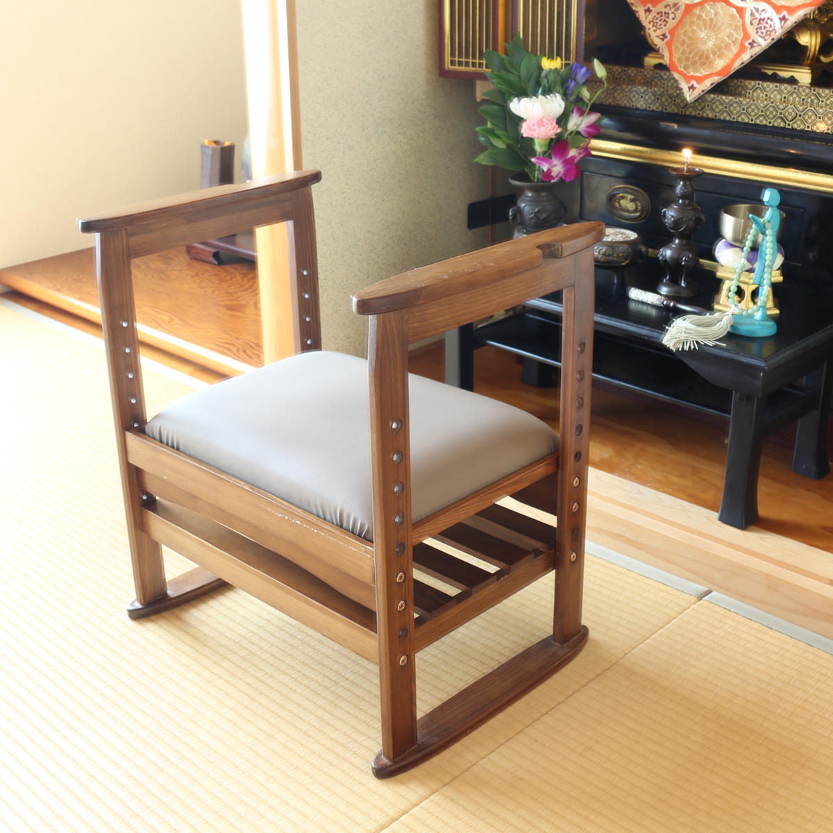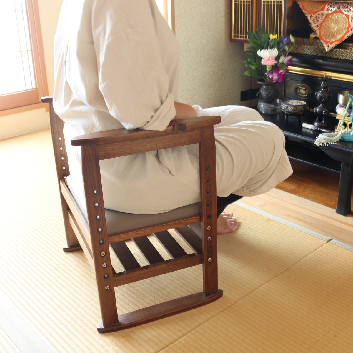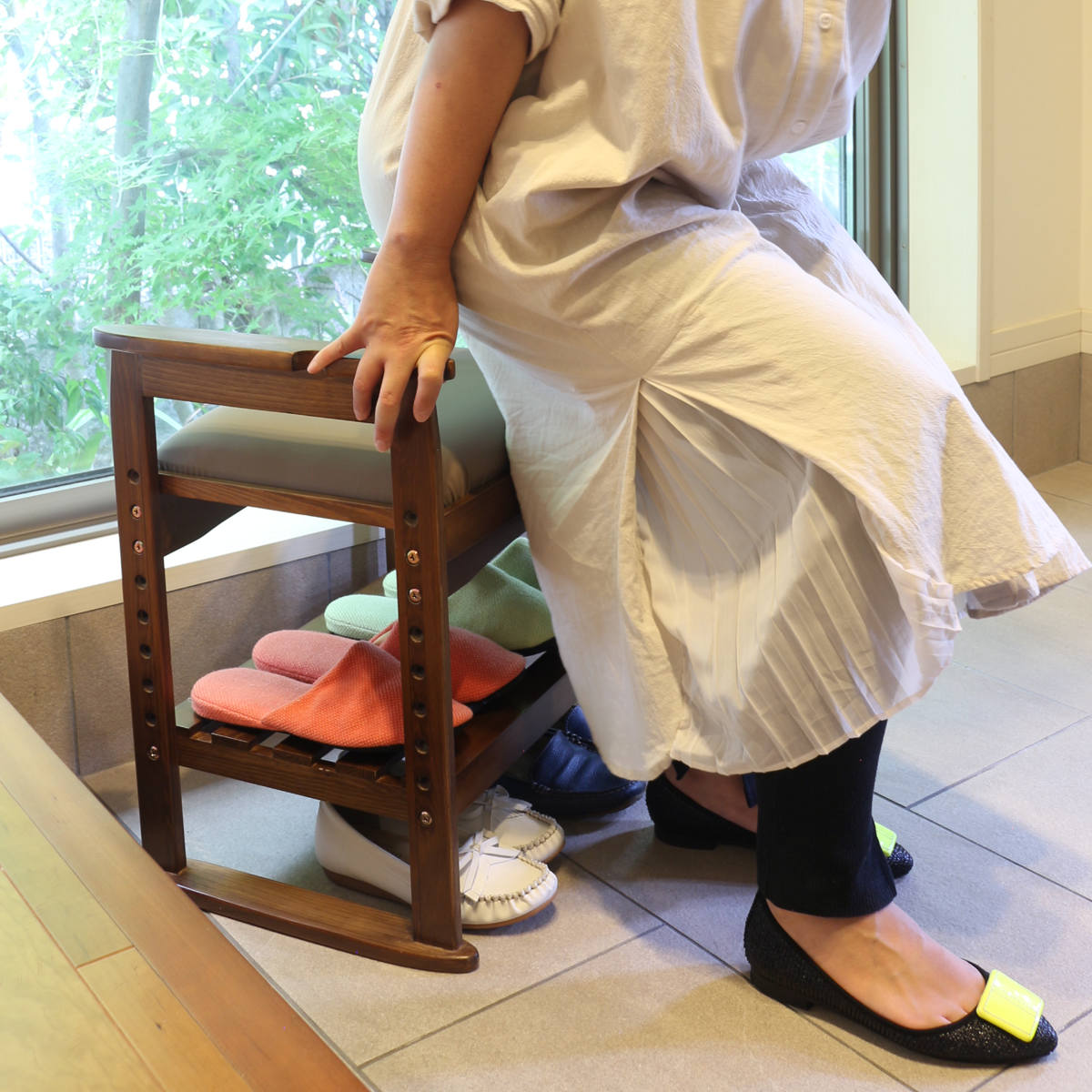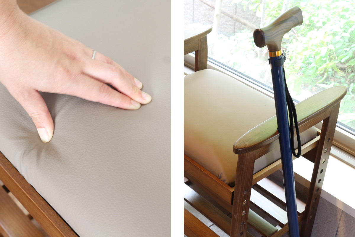 こちらの「ちょっと腰掛け」は、立ち上がる時にラクな高さに設計されているので、スムーズな立ち上がりをサポートしてくれます。