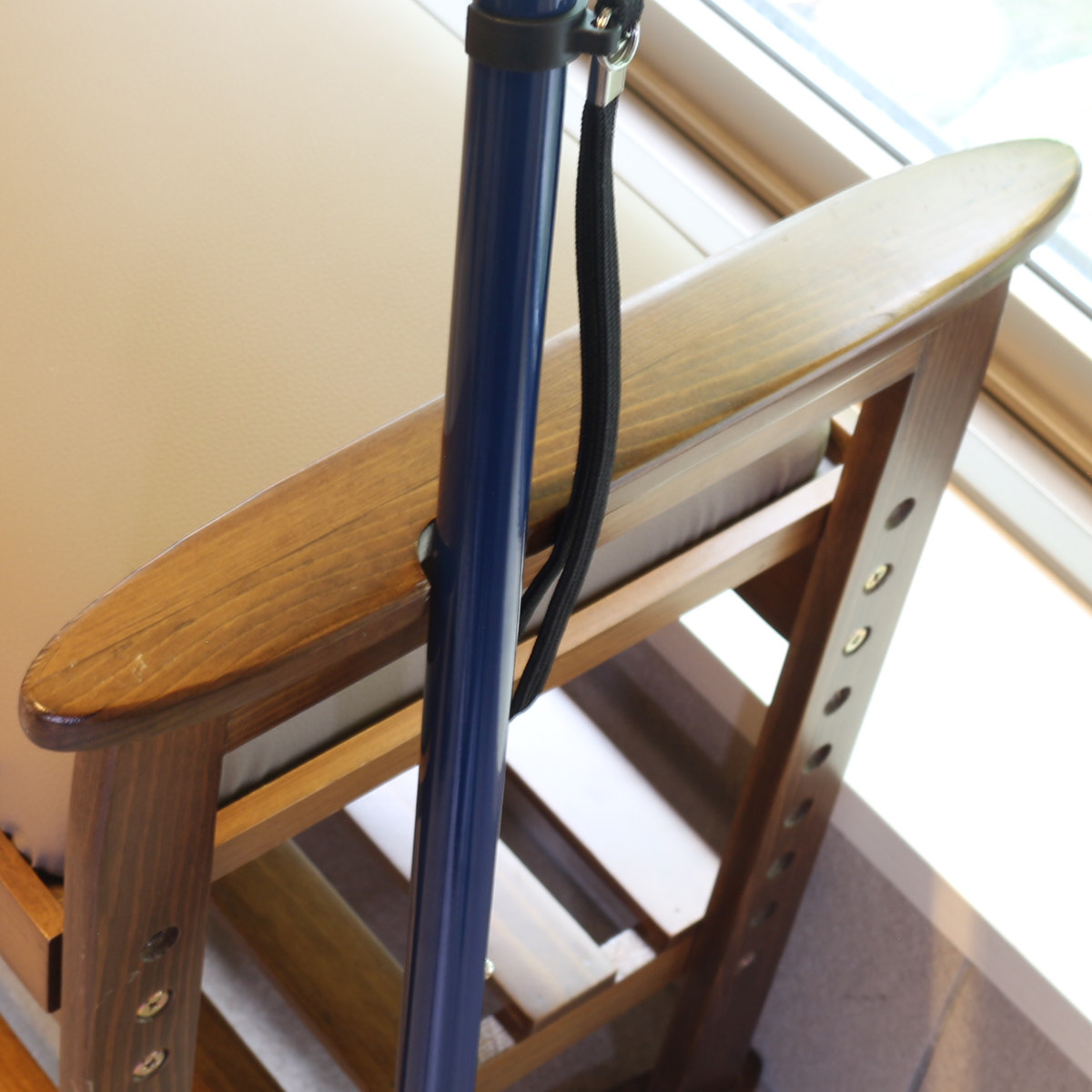 両サイドの取っ手には、杖や傘を立て掛けるのに便利な凹みが施されています。
