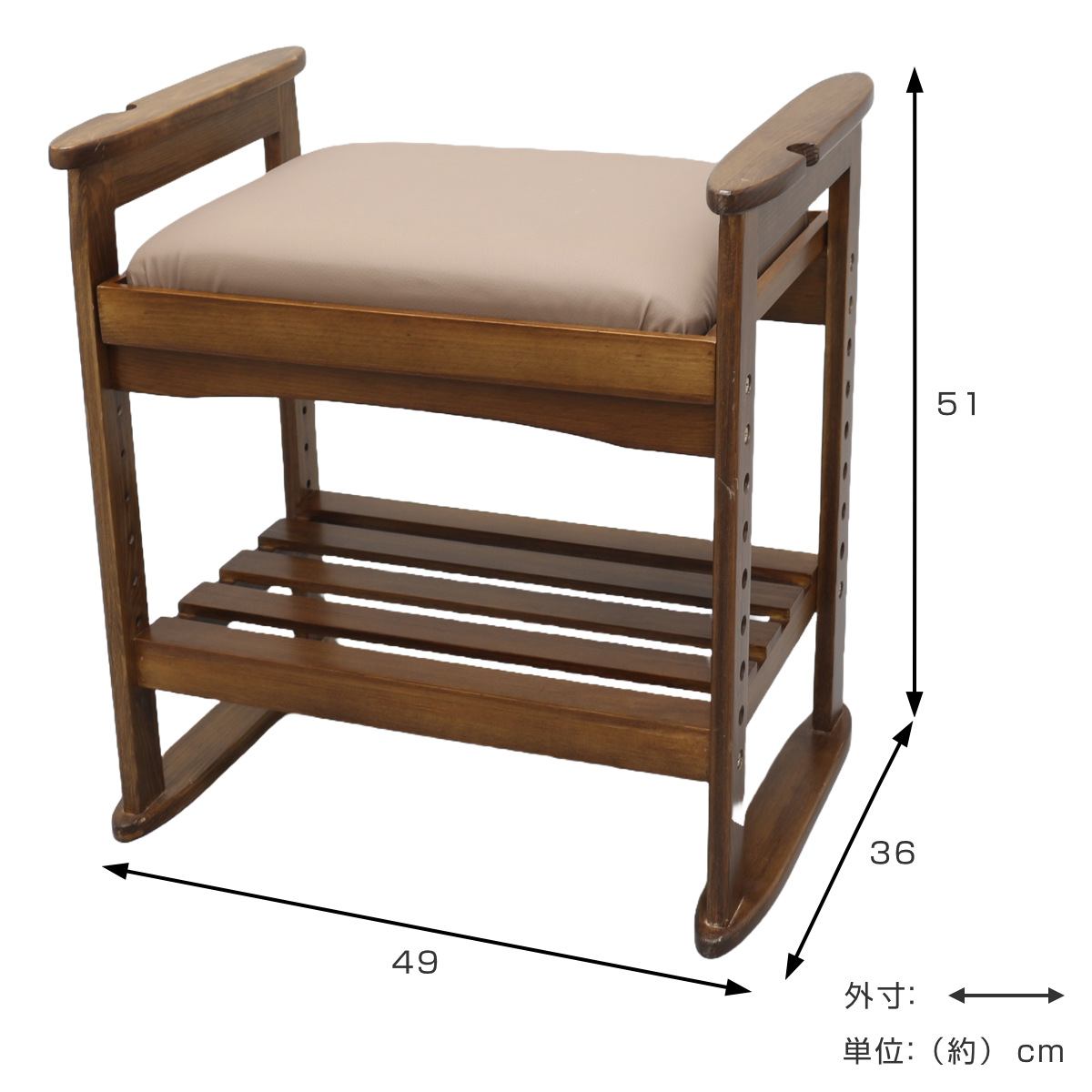 | サイズ | 約 幅49×奥行36×高さ51(cm) 座面高:6段階調節(26~42cm) |