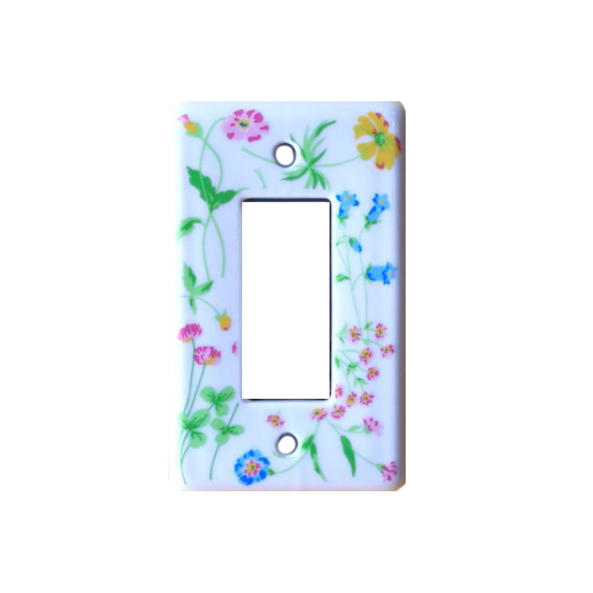 瀬戸焼の上質な磁器で仕上げたスイッチプレートです。色とりどりの花模様をあしらった華やかなデザイン。1・2穴タイプはスイッチに、3穴タイプはコンセントにぴったりフィットします。ネジを外して付け替えるだけで、日常のワンシーンを少し特別な雰囲気に。