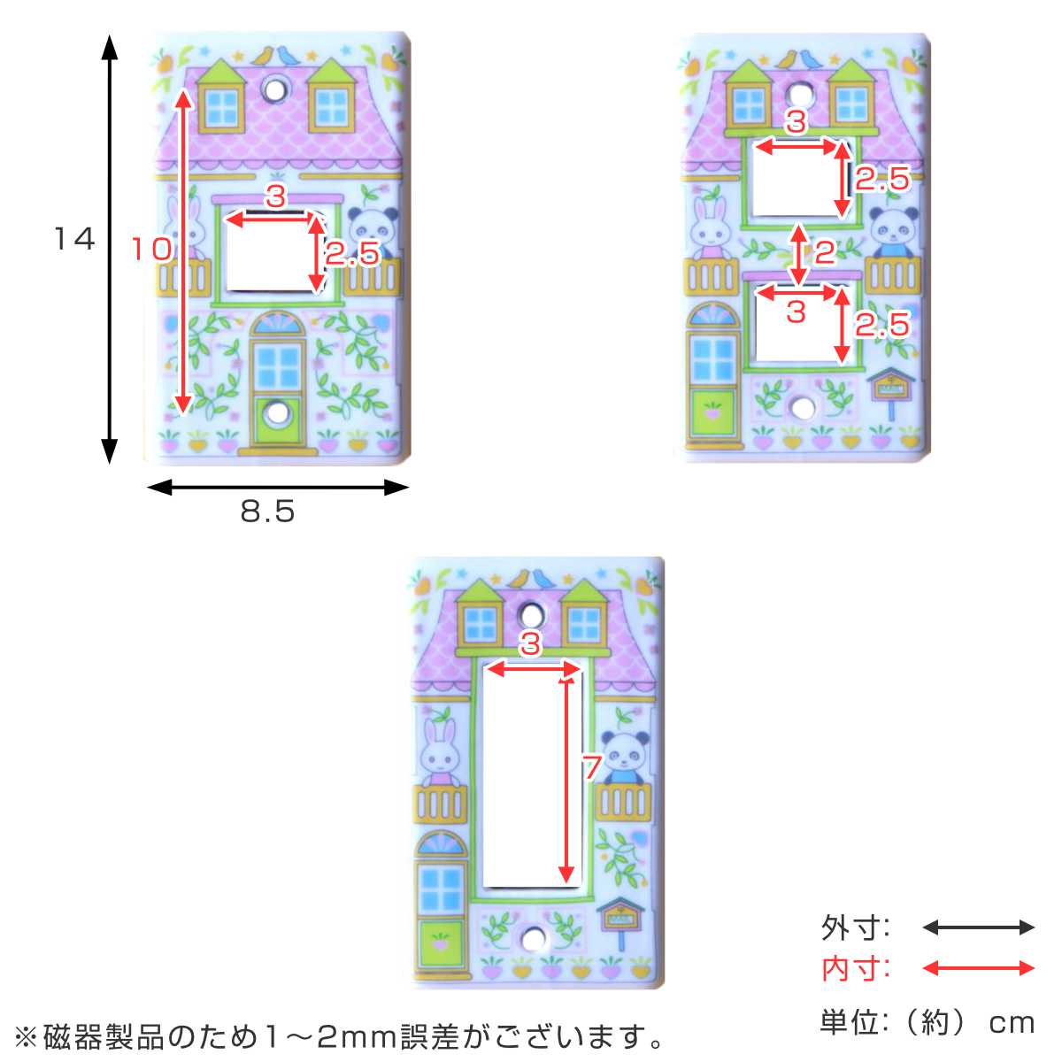 瀬戸焼の上質な磁器で仕上げたスイッチプレートです。お子様たちが思わず笑顔になるような動物のデザイン。1・2穴タイプはスイッチに、3穴タイプはコンセントにぴったりフィットします。ネジを外して付け替えるだけで、お部屋に楽しいワンポイントを添えます。