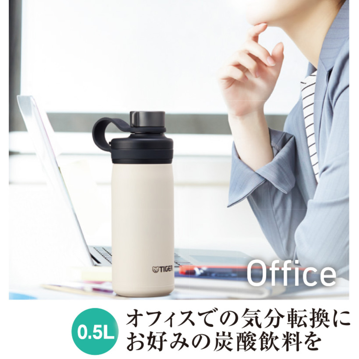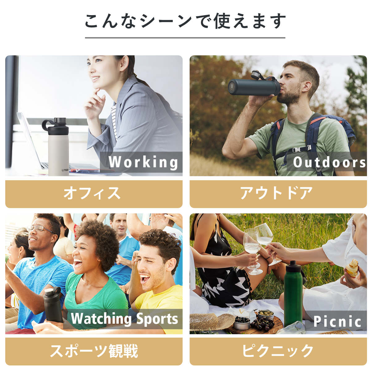 真空断熱構造で冷たいままの炭酸飲料が楽しめる水筒です。アウトドアやスポーツ観戦にはもちろん、オフィスでの気分転換にお好みの炭酸飲料をお持ちいただくこともできます。市販のペットボトルと同じくらいの容量なので、通勤バッグに入れてもかさばらず、仕事中にこまめにリフレッシュしたい人におすすめです。