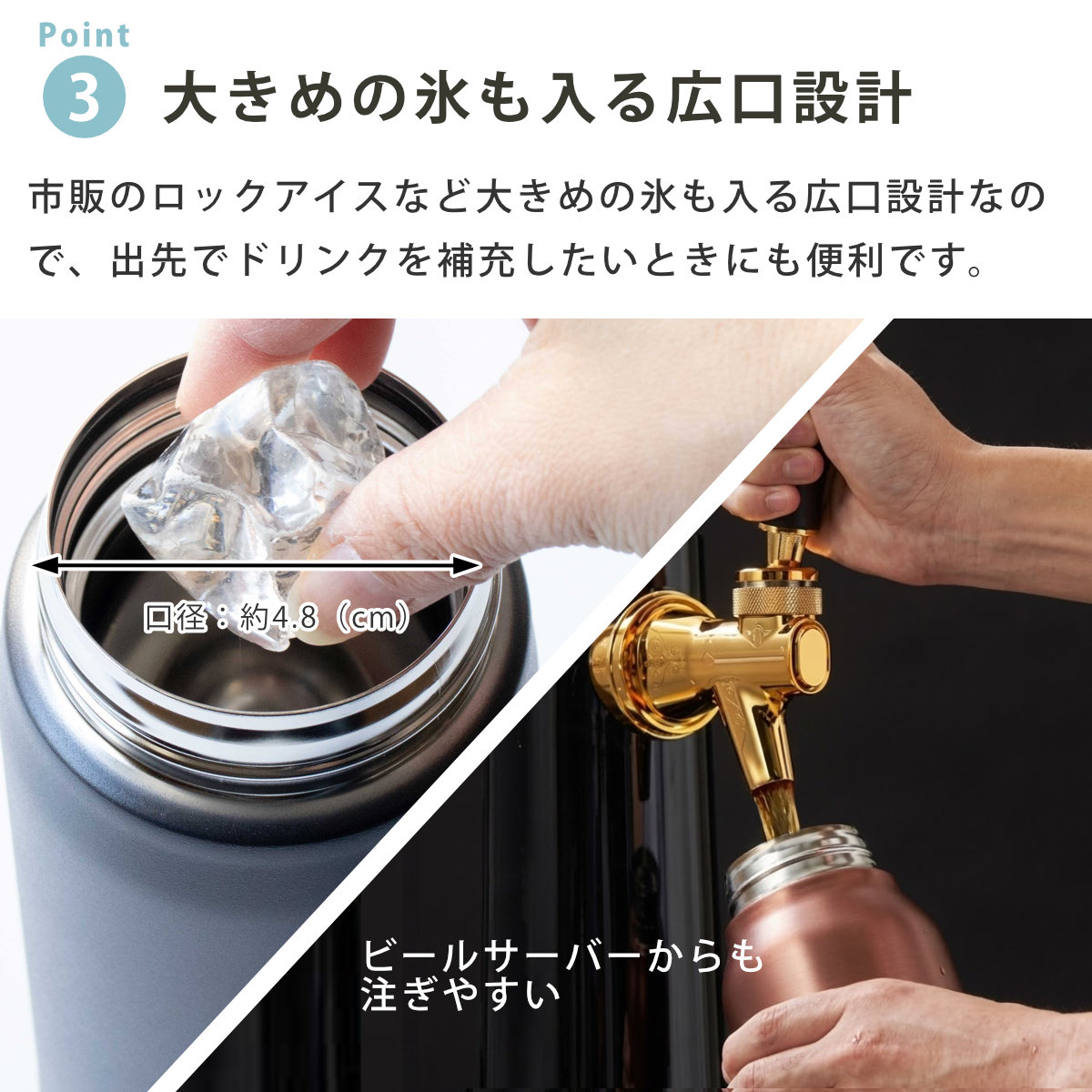 ![]() 500ml オフィスでの気分転換に 【▲このページの商品】 | ![]() 800ml アウトドアのおともに | ![]() 1.2L ホームパーティのドリンク作りに |