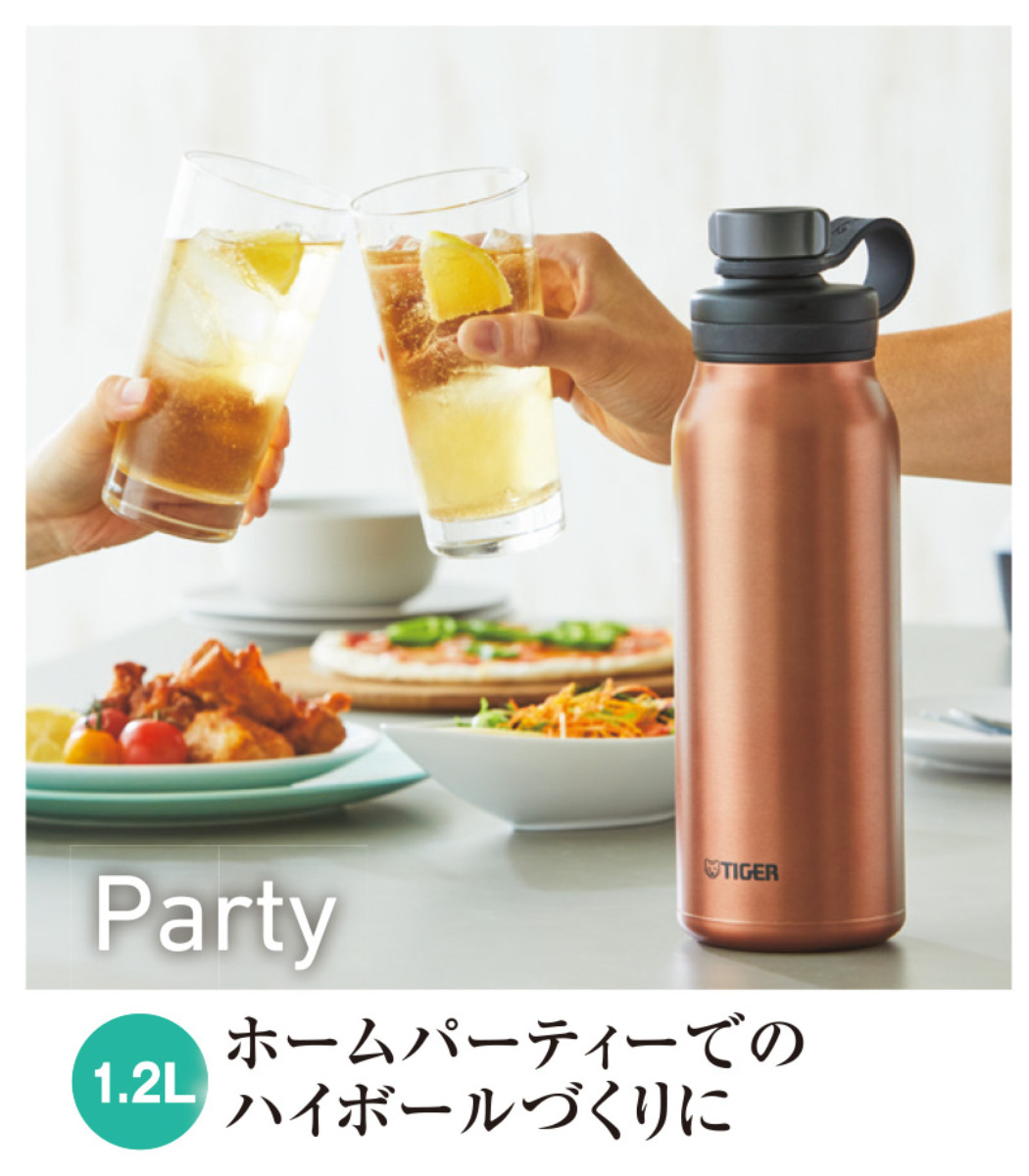 真空断熱構造で冷たいままの炭酸飲料が楽しめる水筒です。ハイボールやレモンサワーなど、まとめてドリンクを作りたいホームパーティーにピッタリのサイズです。キャンプやバーベキューで、ドリンクをシェアするときも十分な容量です。