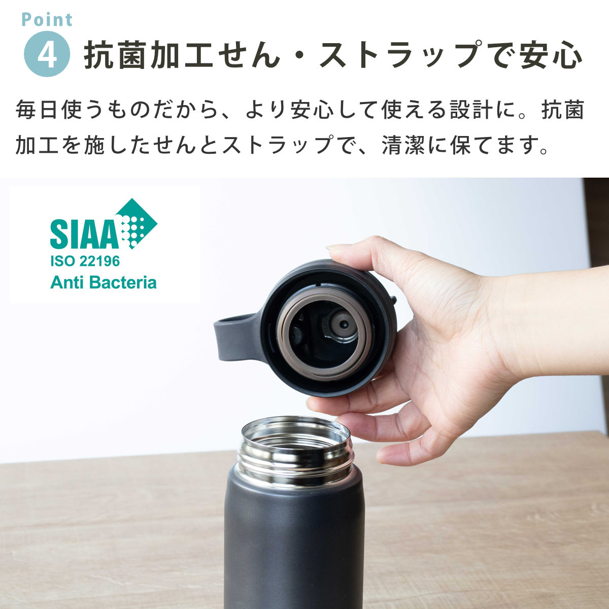 | 材質 | 本体:ステンレス鋼 中栓:ポリプロピレン パッキン:シリコーンゴム |