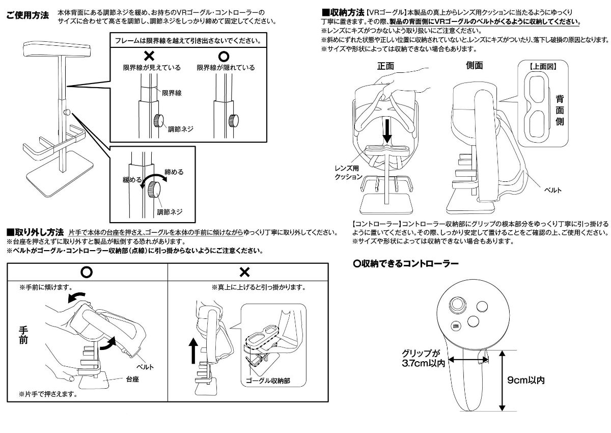 | 耐荷重 | ゴーグル収納部:約 1kg コントローラー収納部1か所あたり:約 500g(静止荷重) |