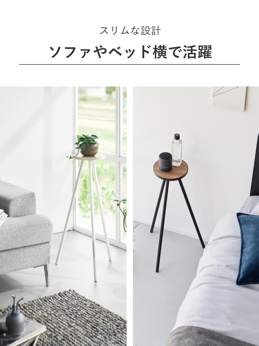 キッチンやベッド、リビングのソファ横など、作業時の補助テーブルとして活躍します。スリム設計で必要な場所にサッと置いて使えます。