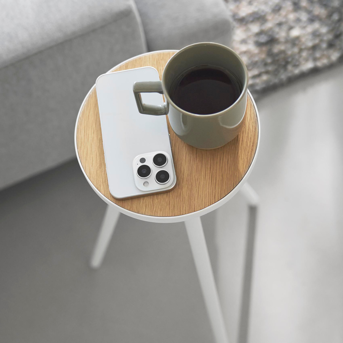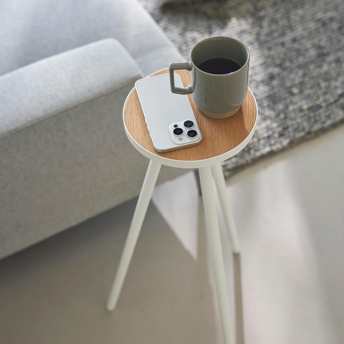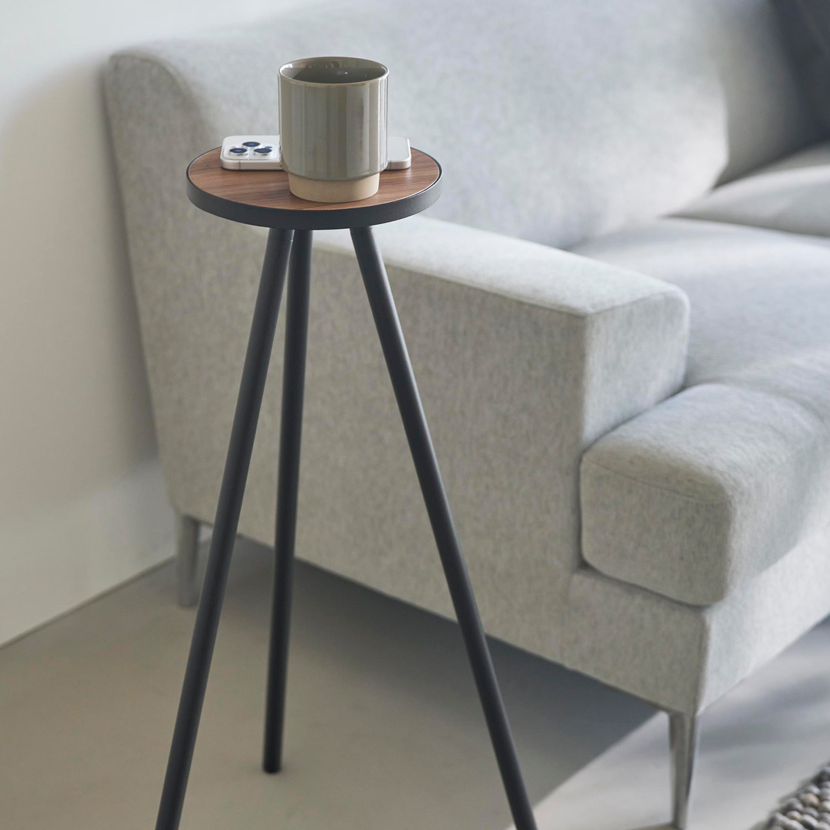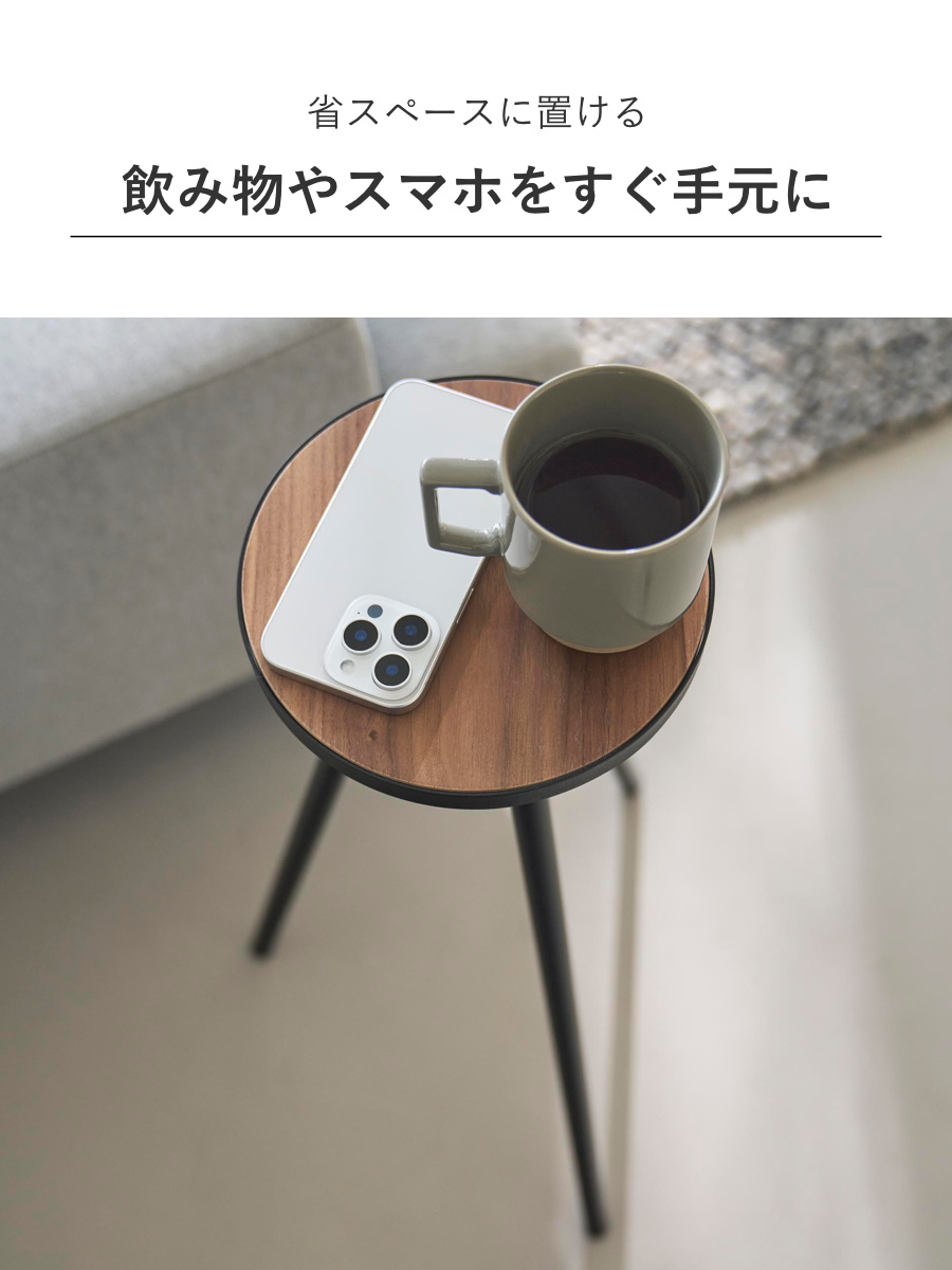 飲み物やスマートフォン、ノートパソコンなどを手元に置ける省スペース設計です。小さな植物のディスプレイにも便利です。