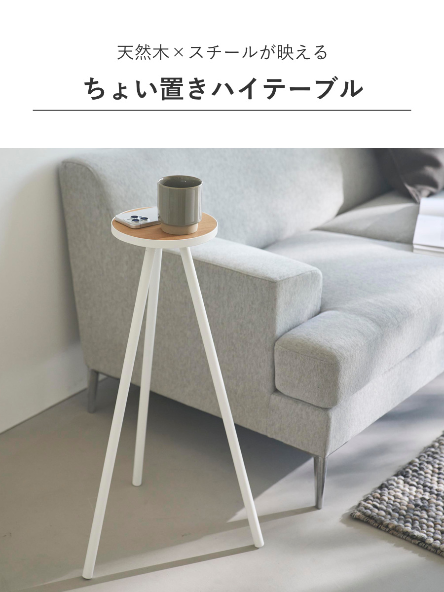 天然木とスチールを組み合わせた美しいデザインのちょっと置きに最適なハイテーブルです。安定感のあるスチールフレームがインテリアに自然と馴染みます。