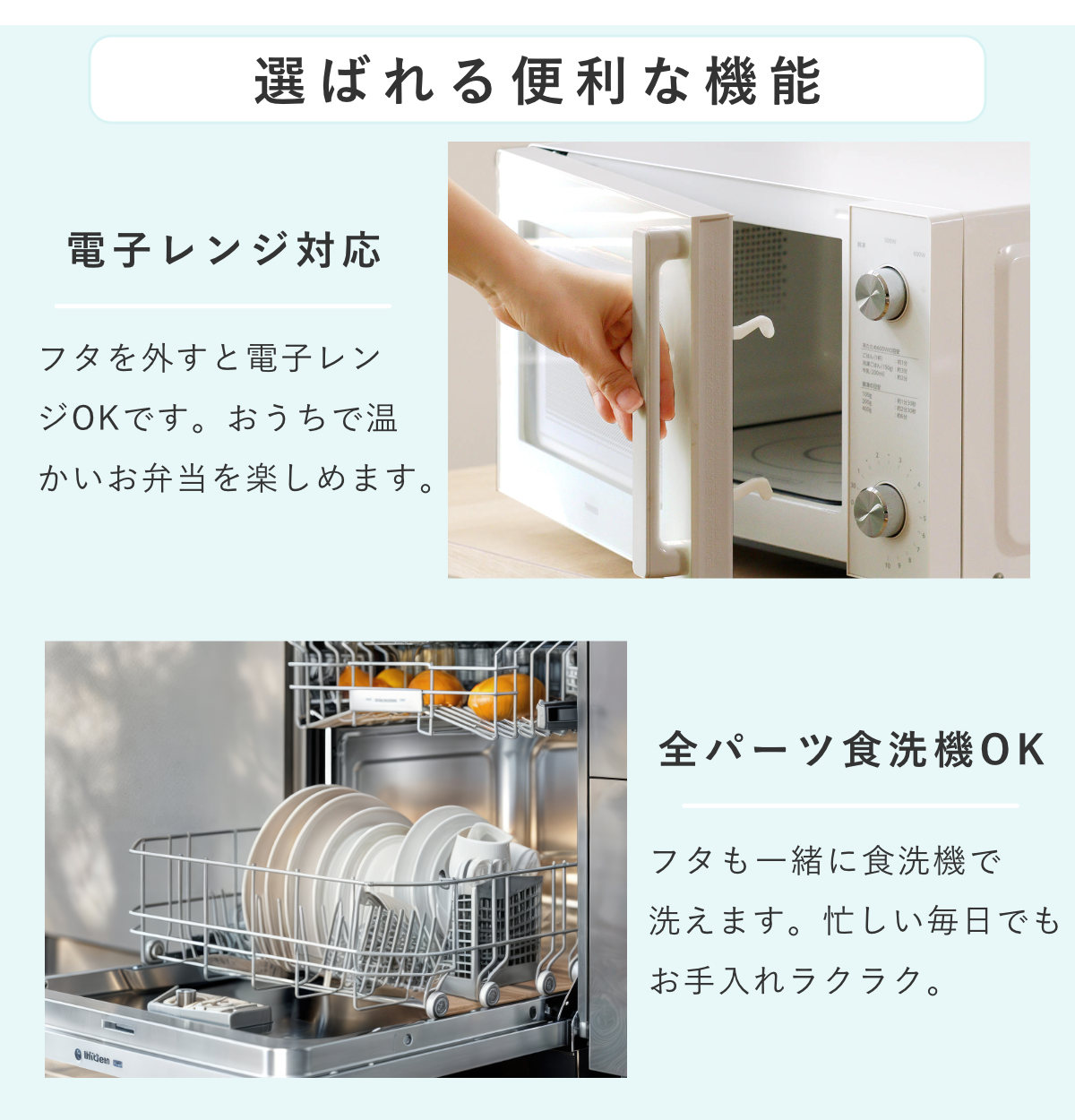●蓋を外せば電子レンジ対応です。おうちでのお昼ごはんや休日ランチにも。
