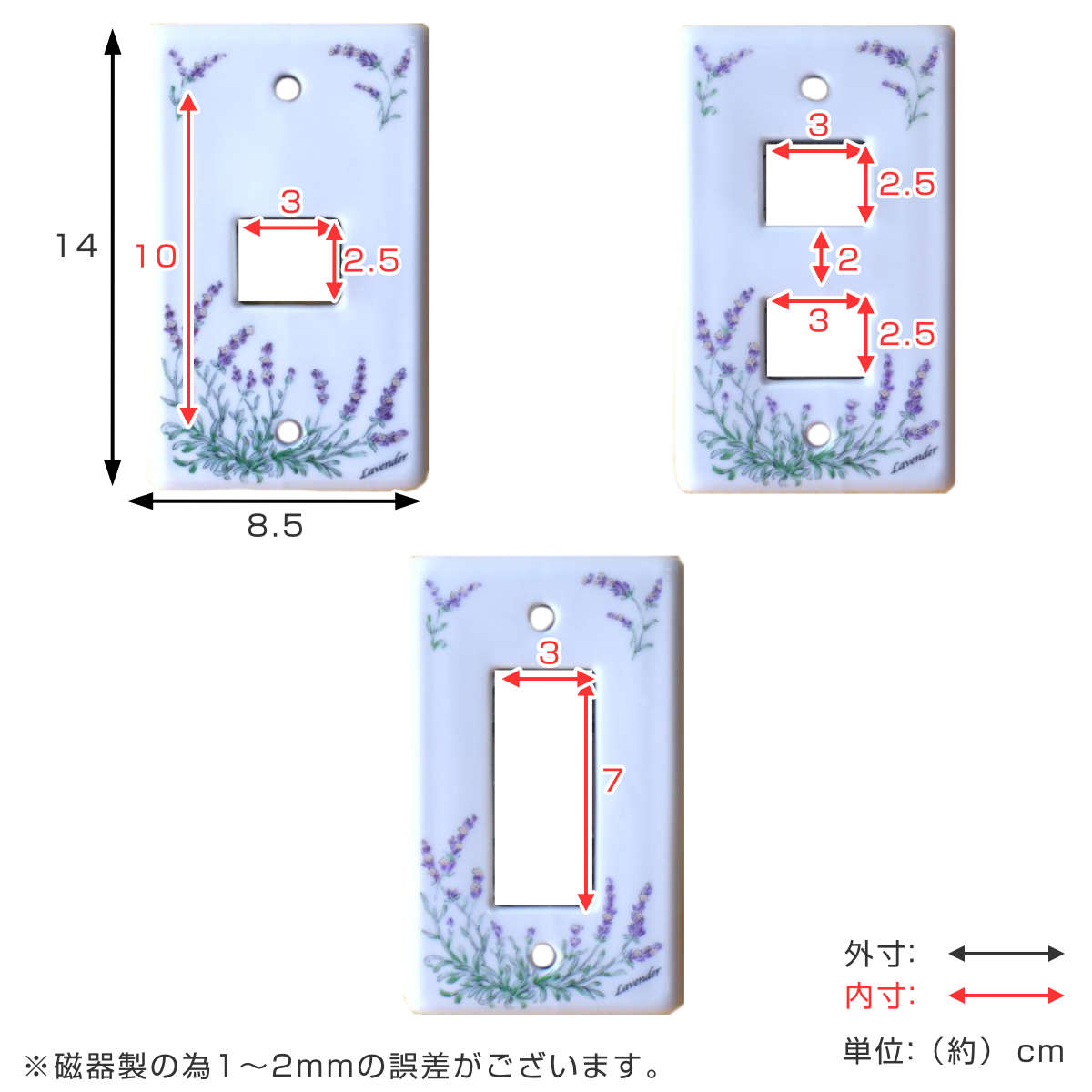 ● 1・2穴タイプはスイッチ用、3穴タイプはコンセント用として使えます。