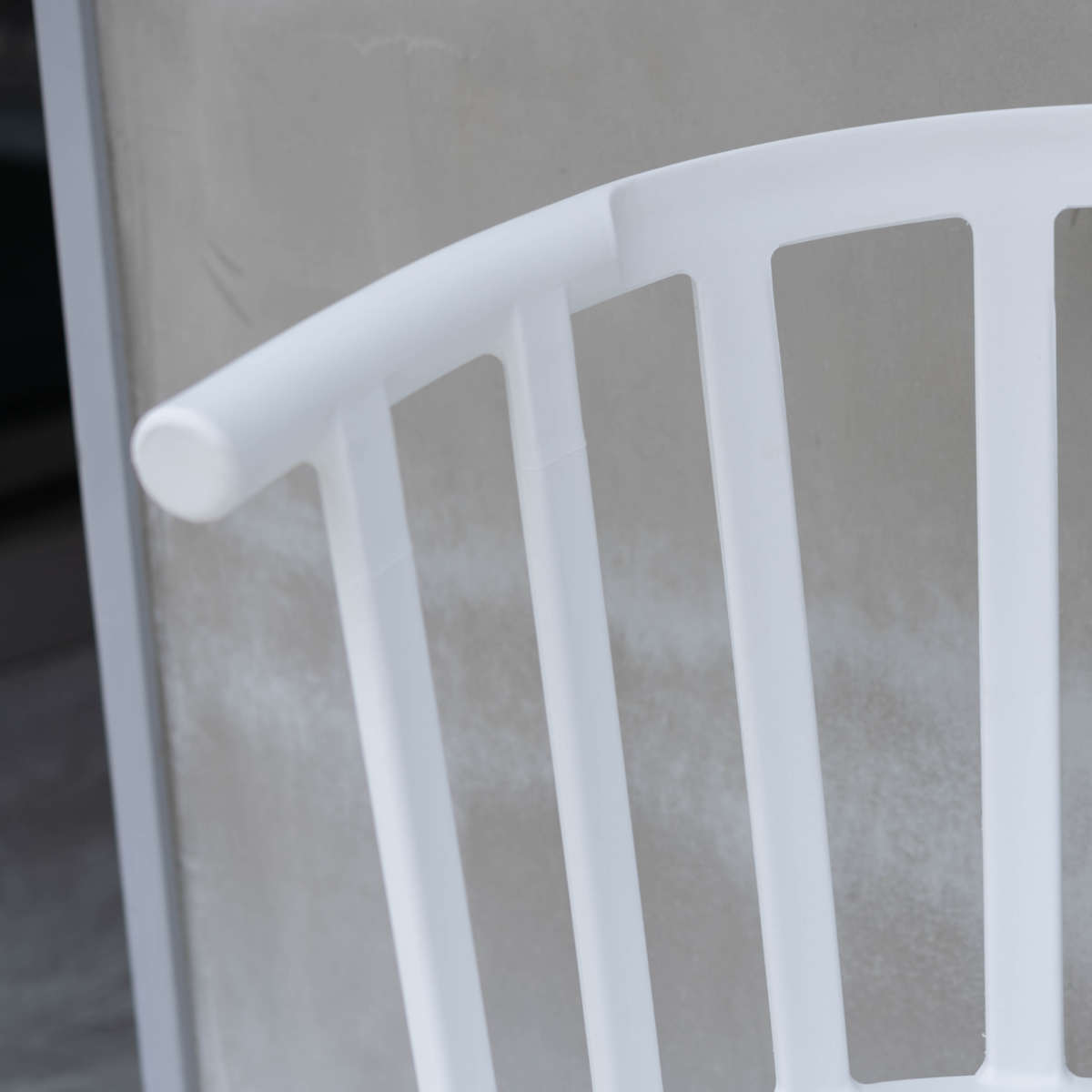 背もたれがスティックバックとなった、ウィンザーデザインのチェア。尖った部分が少ないので出入りが多い場所でも安心です。