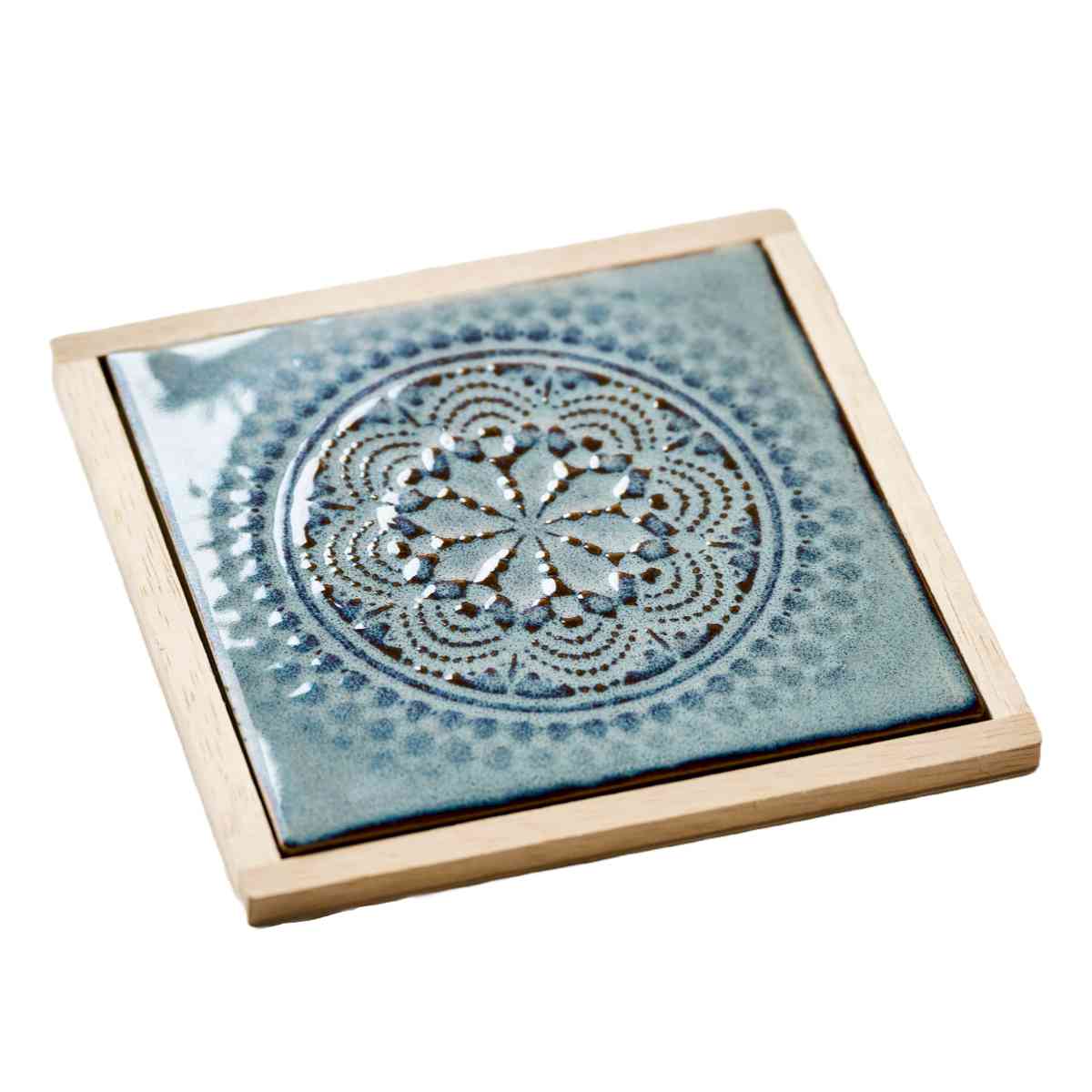 ●マンダラ模様が美しい、美濃焼タイルの鍋敷きです。