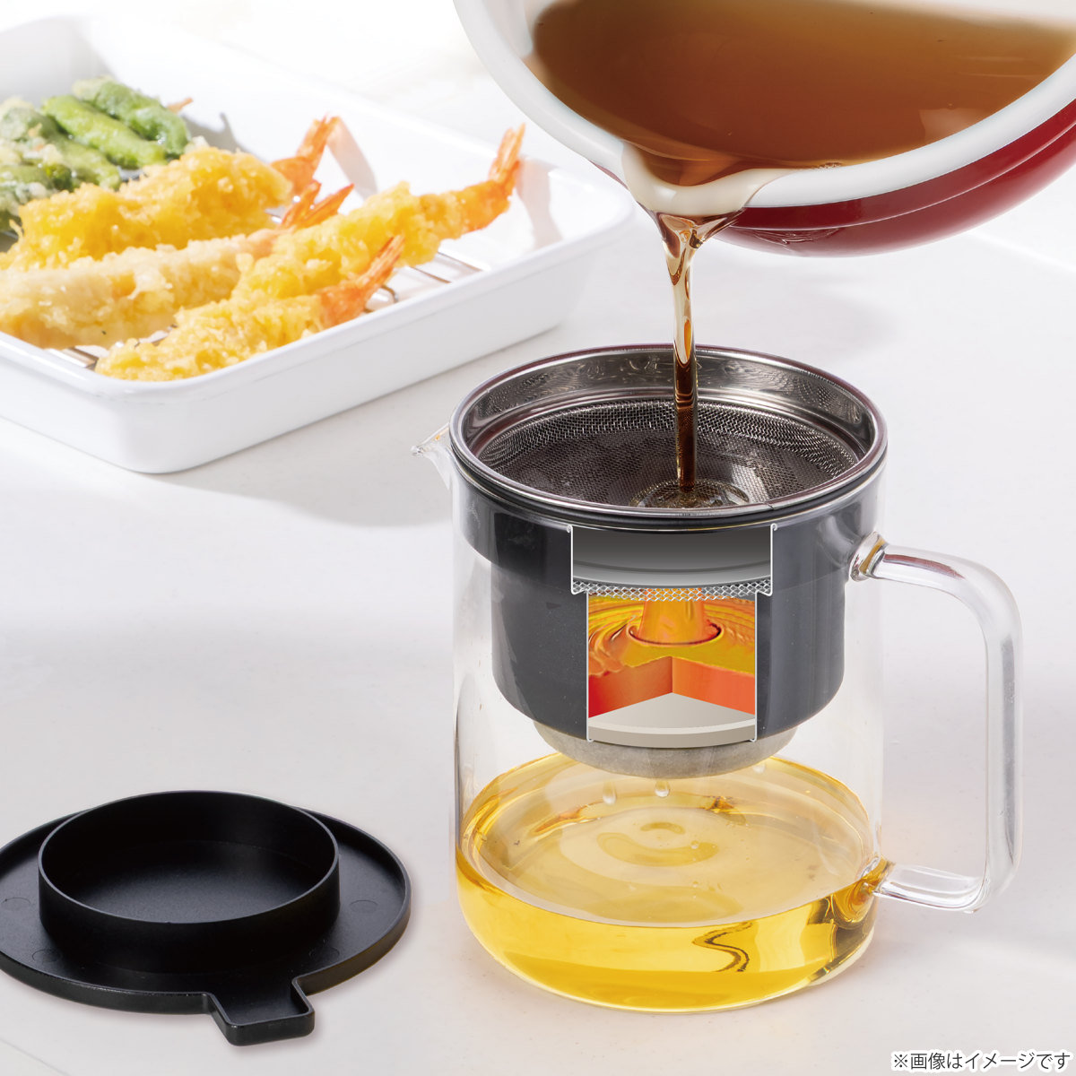 ※ろ過の際は、揚げた油を10分以上冷まし180度以下でろ過してください。