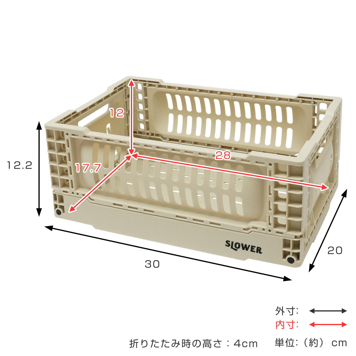 | サイズ | 外寸:約 幅30×奥行20×高さ12.2(cm) 内寸:約 幅28×奥行17.7×高さ12(cm) 折り畳み時の高さ:約 4cm |