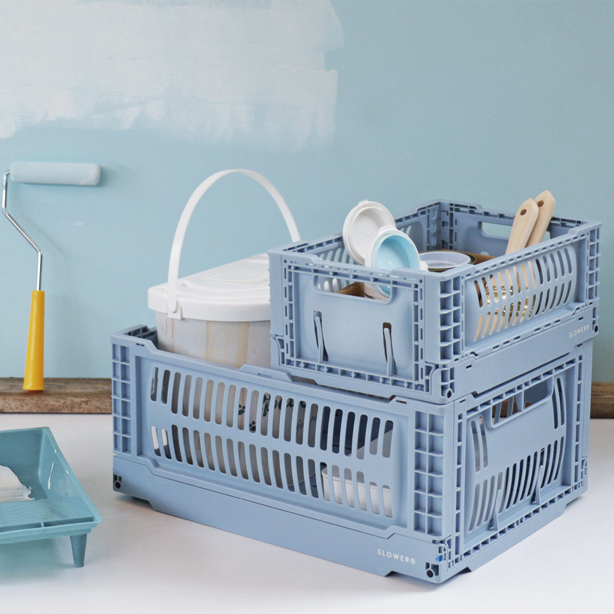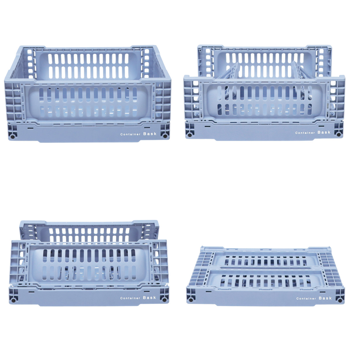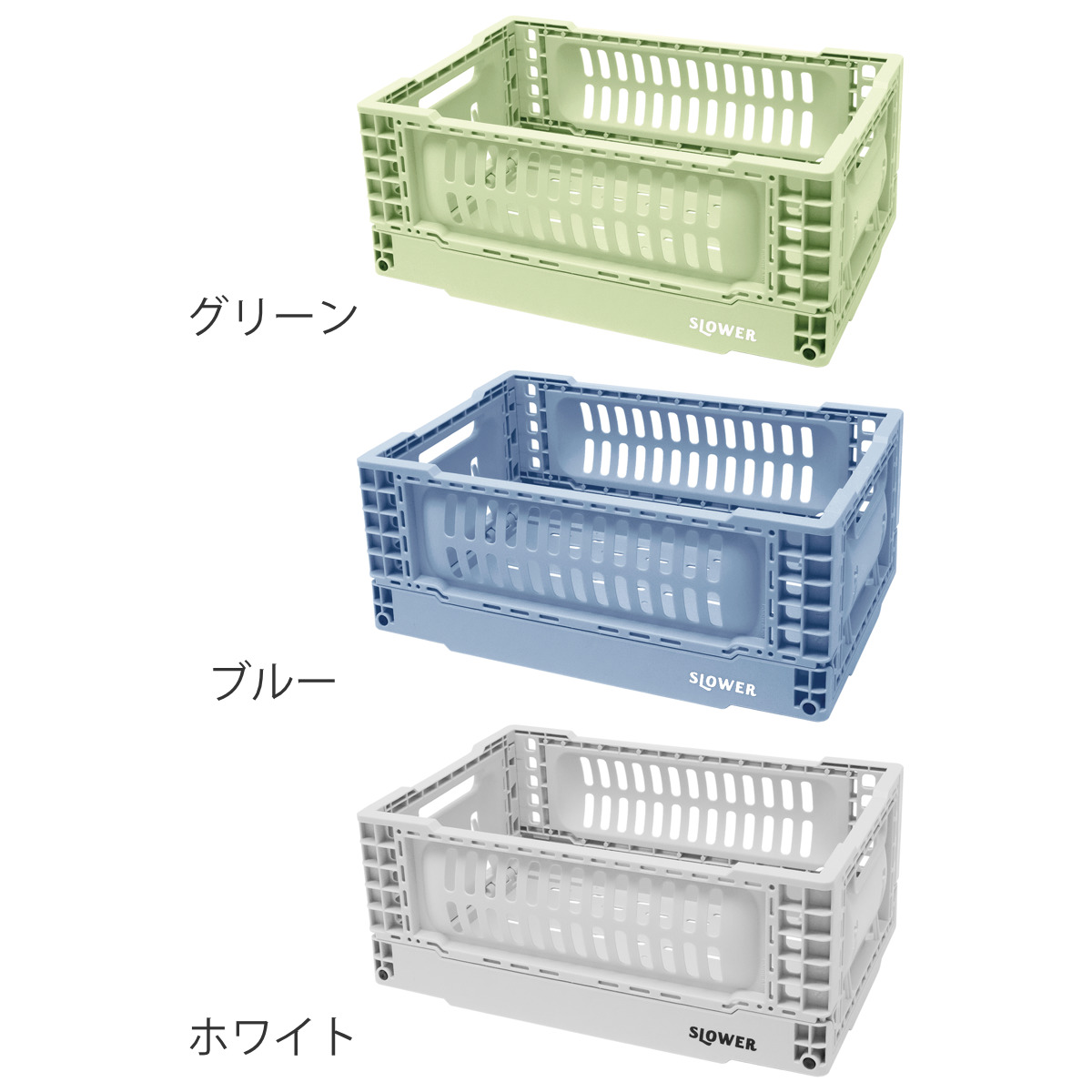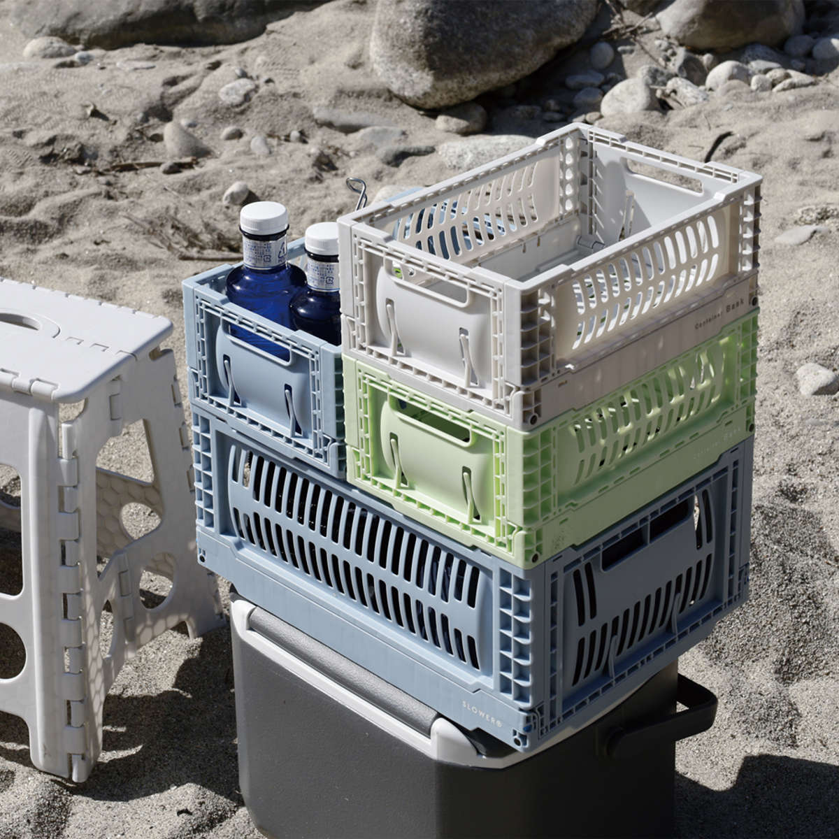 サイズ違いで積み重ね可能で、効率よく収納できるシンデレラフィット仕様。使わないときは平らに折りたため、省スペースで片付けられます。