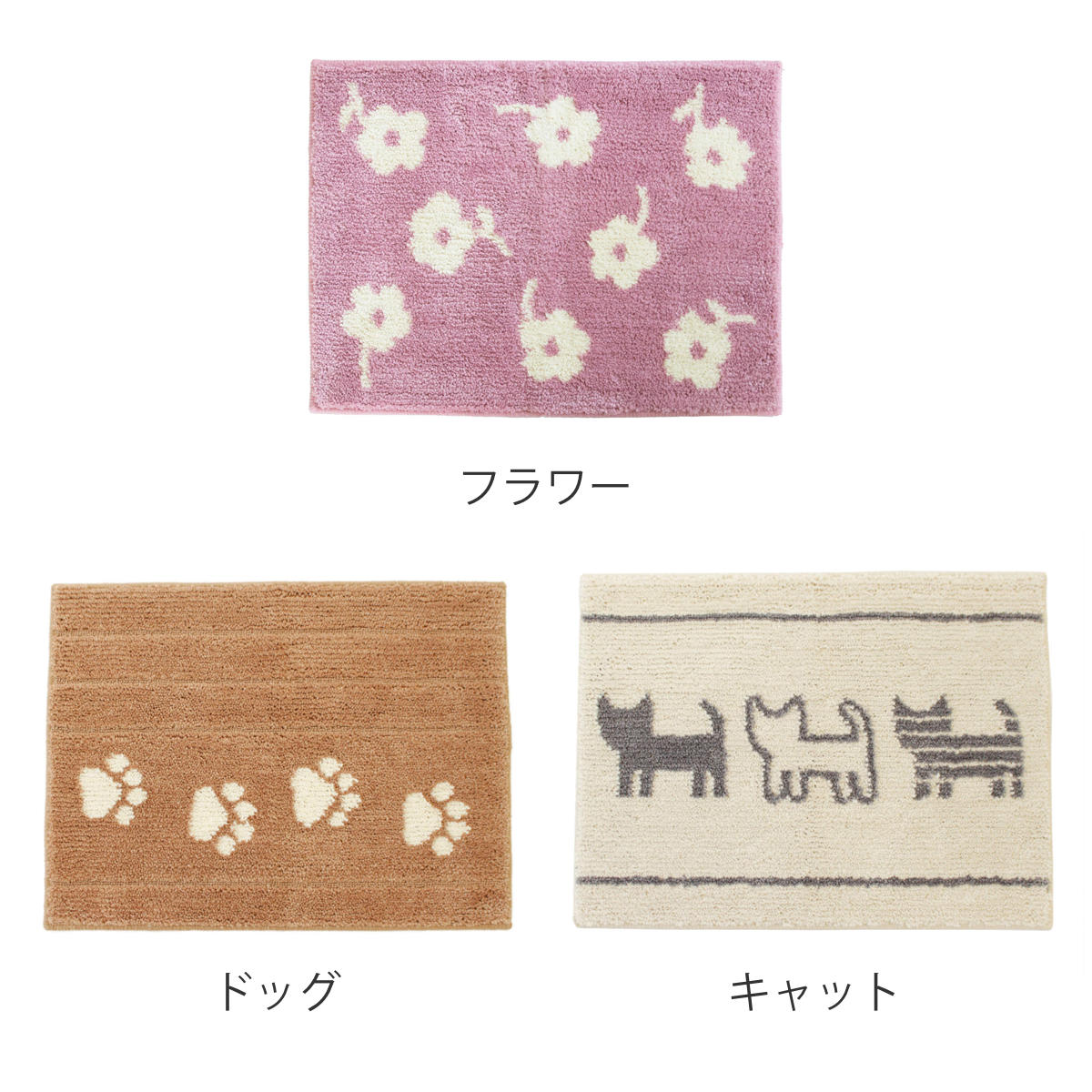 ふわふわのポリエステル糸をたっぷり使用したバスマットです。シンプルなフラット仕上げでどこを踏んでも「ふんわり」と感じられます。可愛らしい花や犬、猫の柄があり、バスルームを明るい空間にしてくれます。
