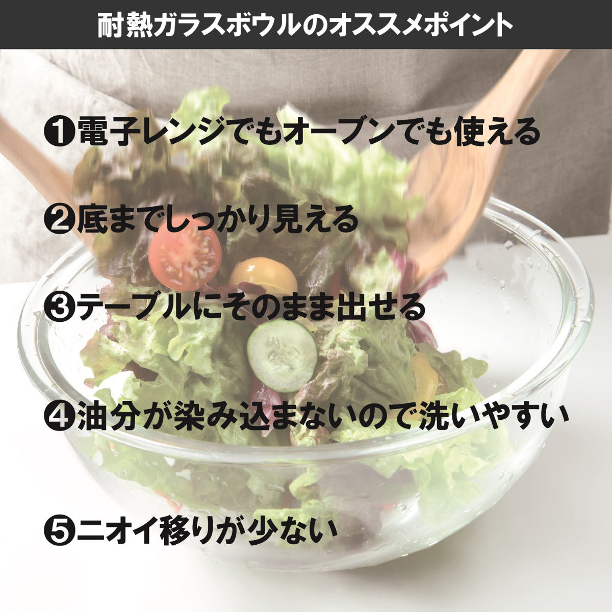 ●耐久性に優れる耐熱ガラス製のボウルです。