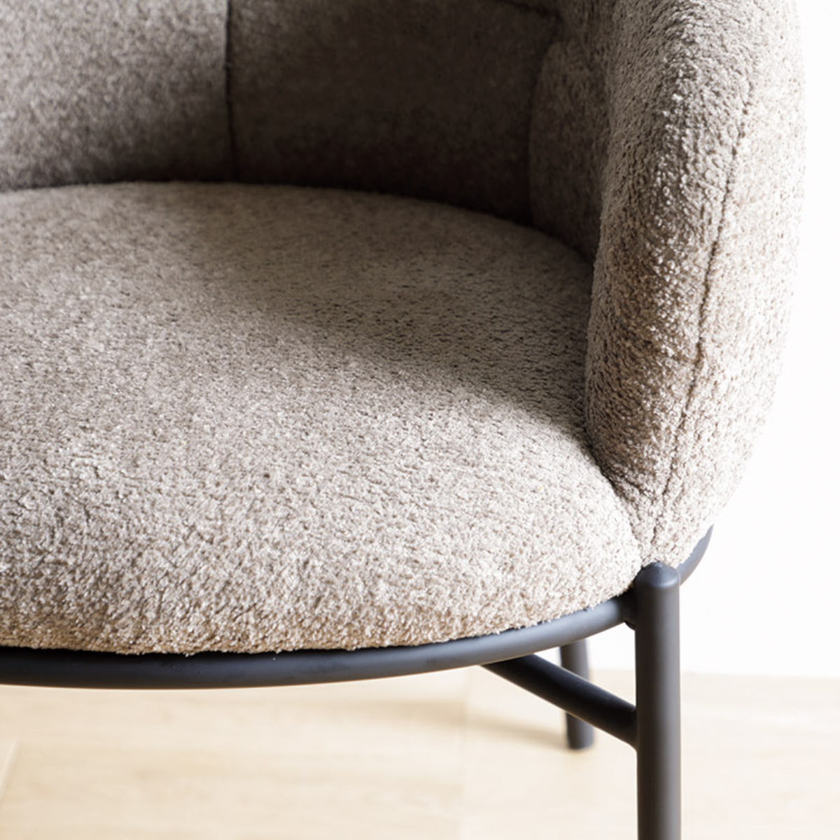 表面に凹凸のついたブークレ調の生地はモコモコとした肌ざわりで、温かみを感じる素材感です。