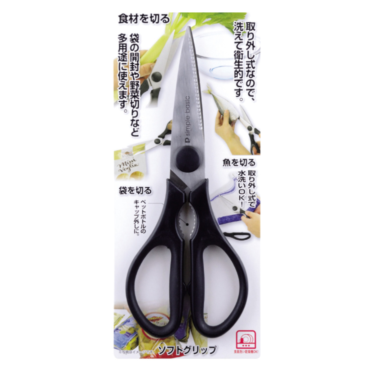 ●袋の開封から肉・魚・野菜のカットまで、幅広く活躍するキッチンバサミです。