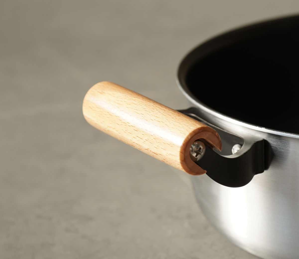 ハンドルには天然木を使用しています。上質なデザインかつ肌触りがよく手になじみます。