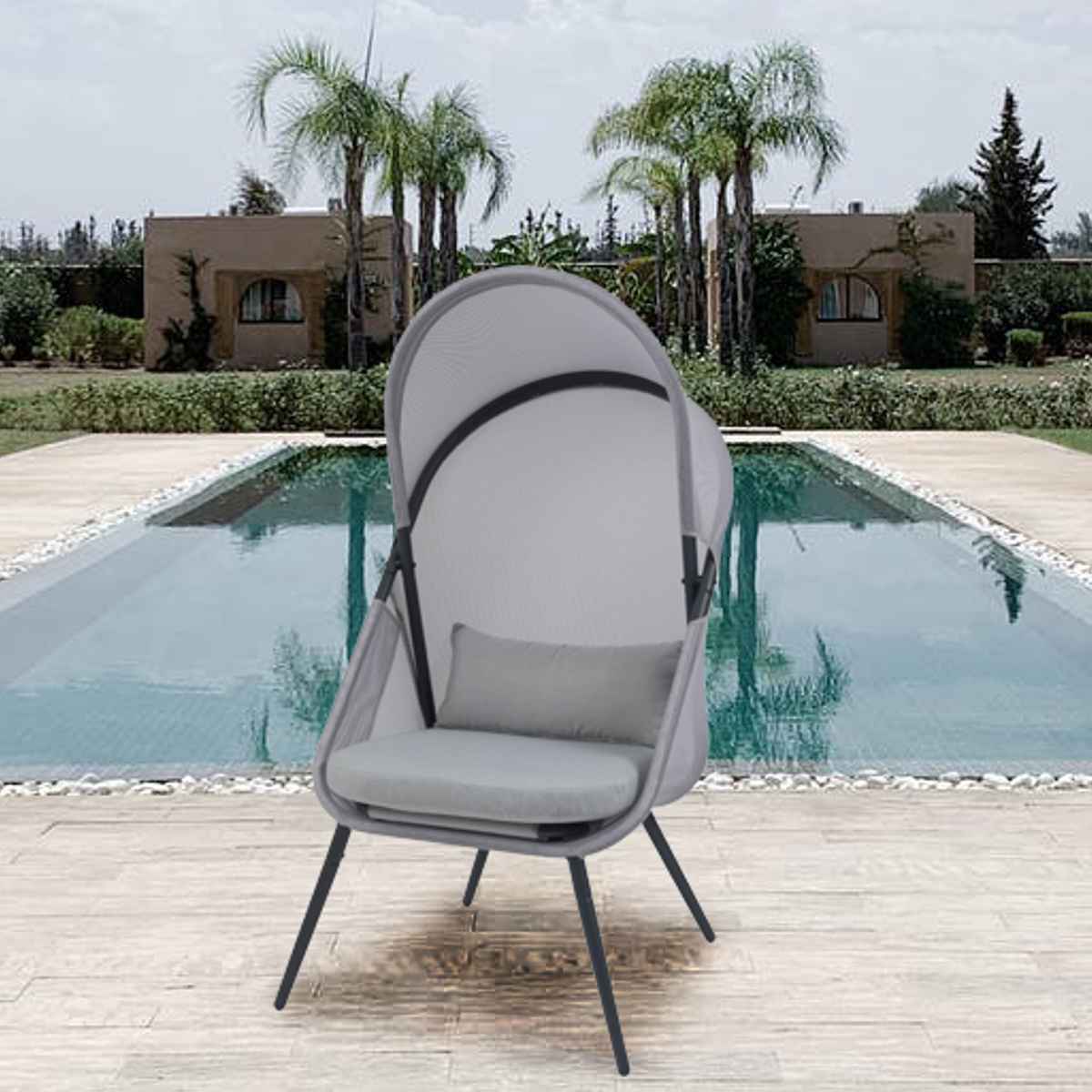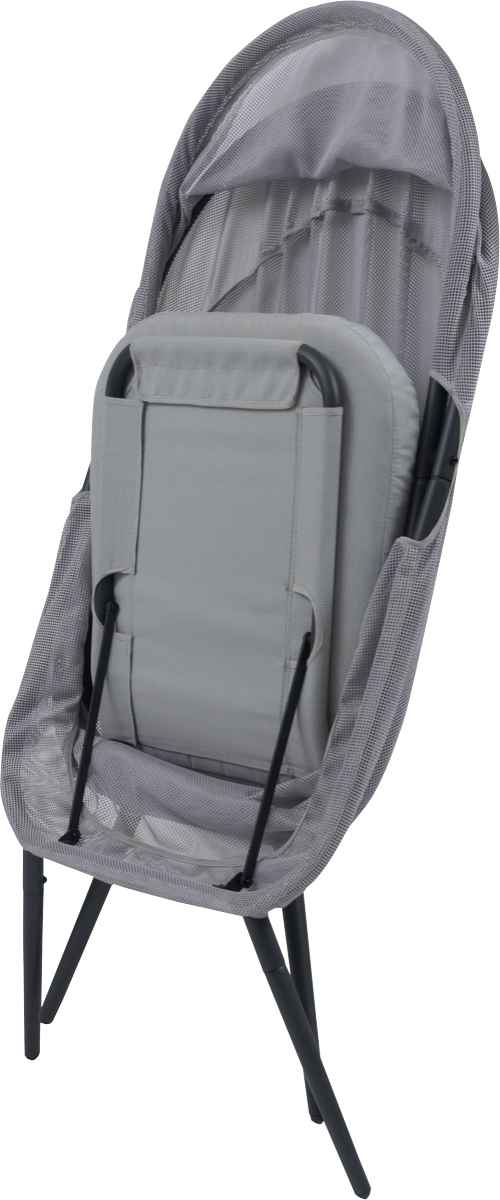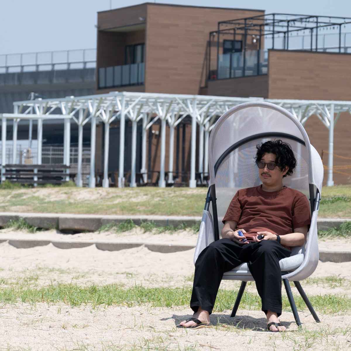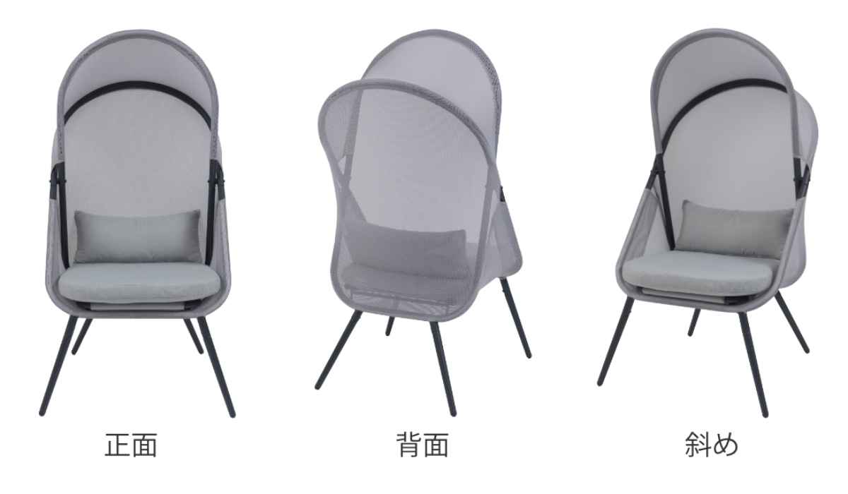 アウトドアシーンで活躍する折りたたみチェアです。風を通すメッシュ素材と日よけのルーフ付きなので、日差しの強い屋外でも快適に過ごすことができます。
