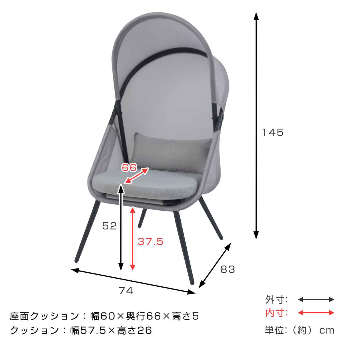 | サイズ | 約 幅74×奥行83×高さ145(cm) 座面高:約 52(cm) 座クッション:約 幅60×奥行66×高さ5(cm) クッション:約 幅57.5×高さ26(cm) |