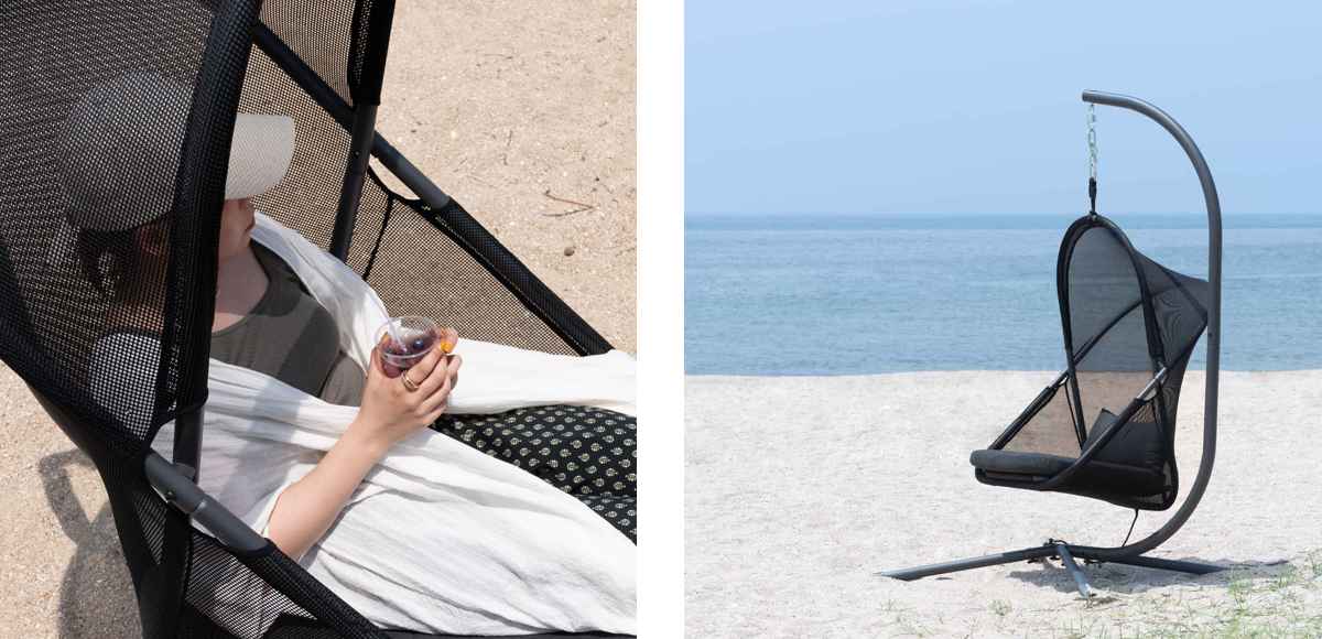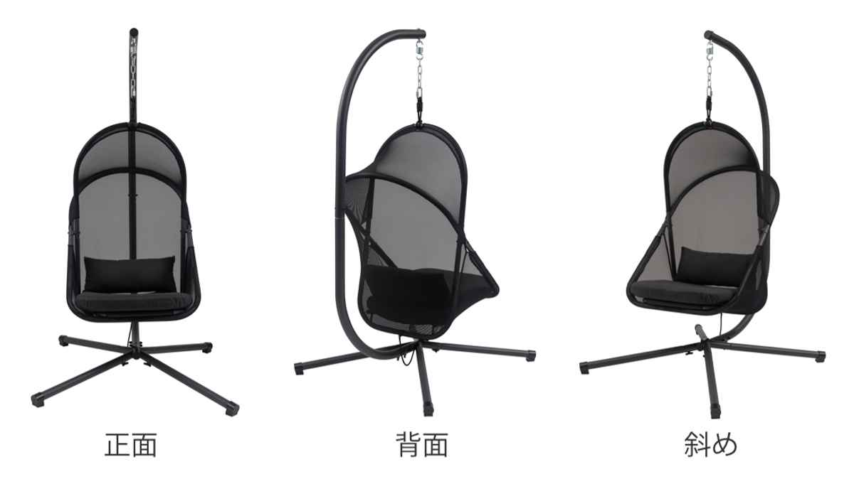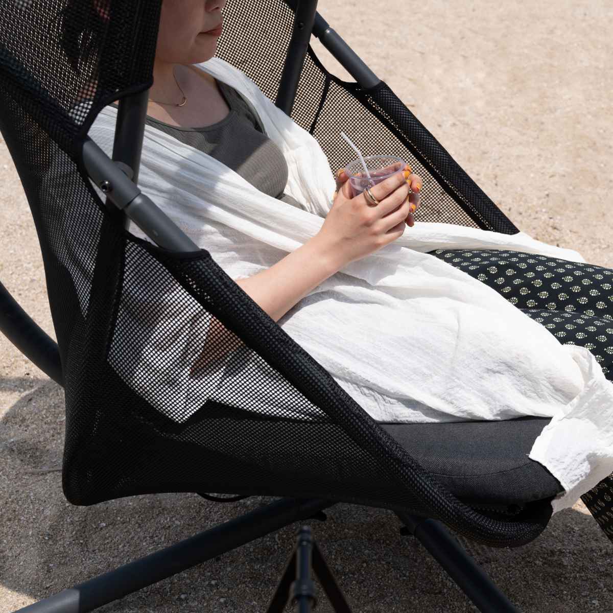 屋外での使用はもちろん、オフィスのリフレッシュルームなどに設置するリラックスチェアとしてもおすすめです。