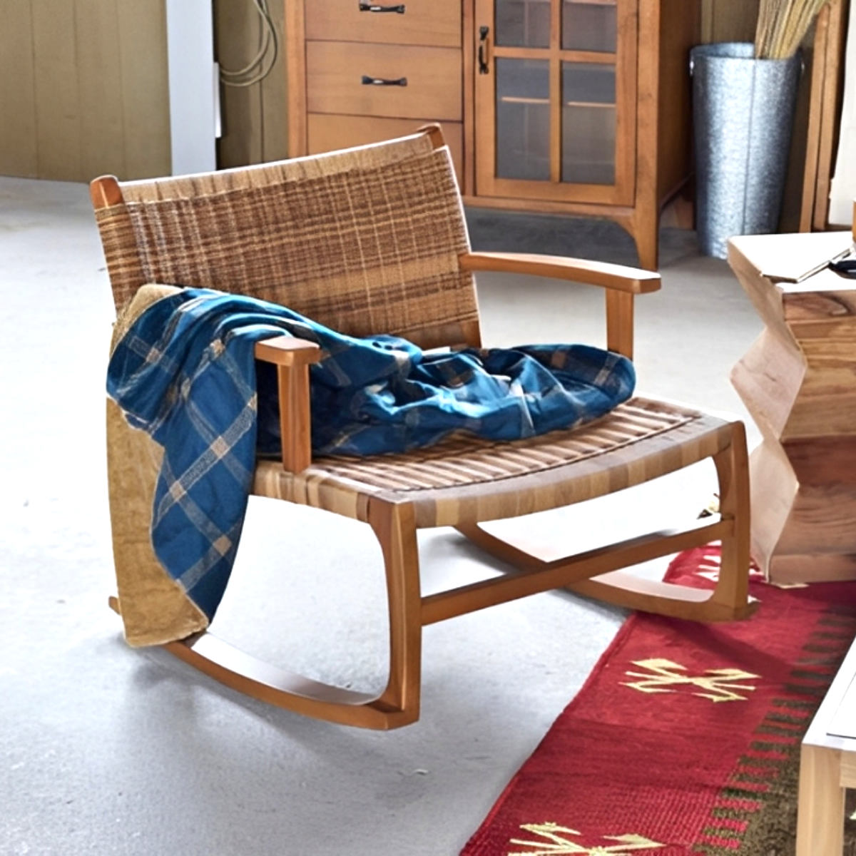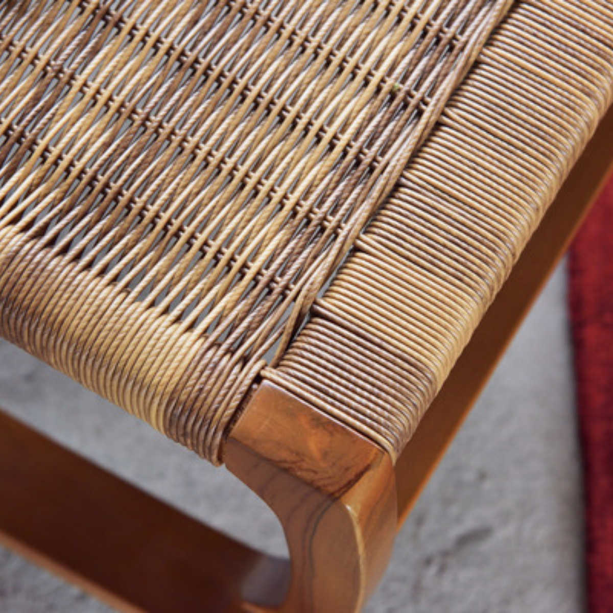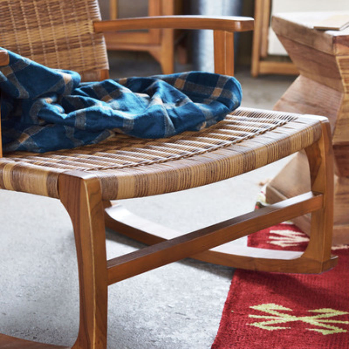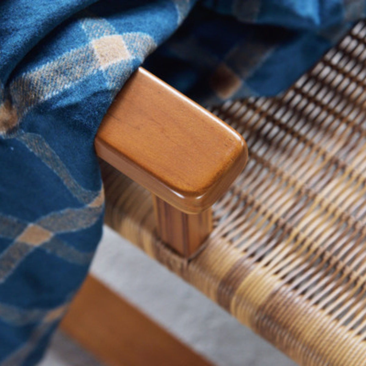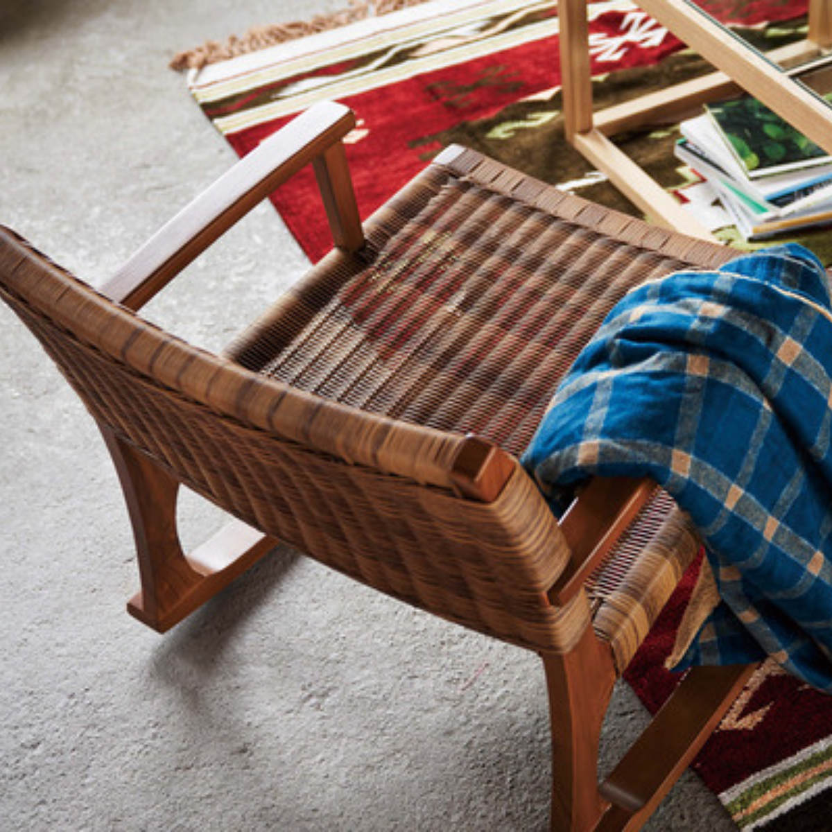 天然木フレームと通気性のよい編み込みシートが調和した、ナチュラルで落ち着きのあるデザインです。使うほどに味わいが増す素材感と、美しいカーブを描くフォルムがリビングやベランダ、書斎などさまざまな空間にマッチします。