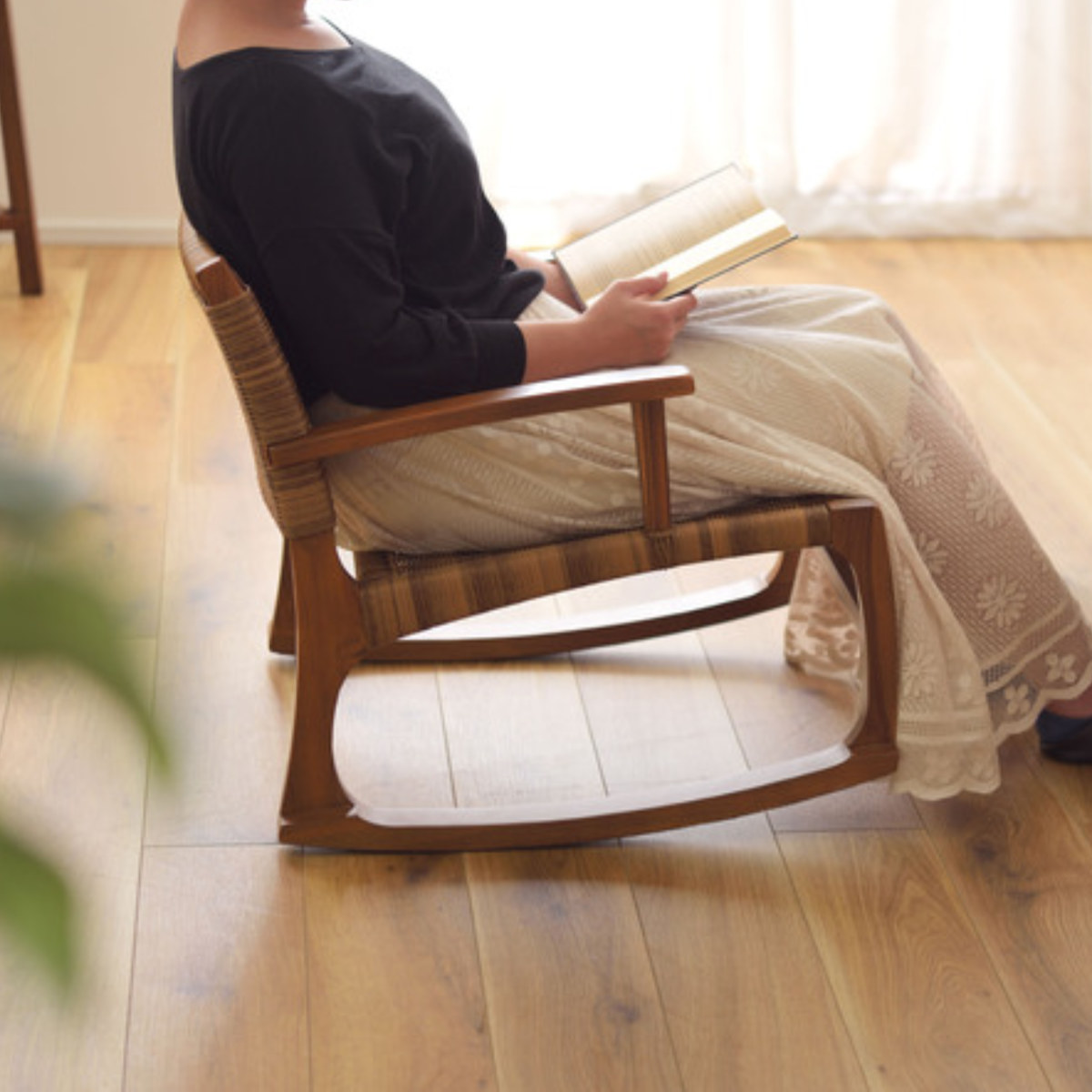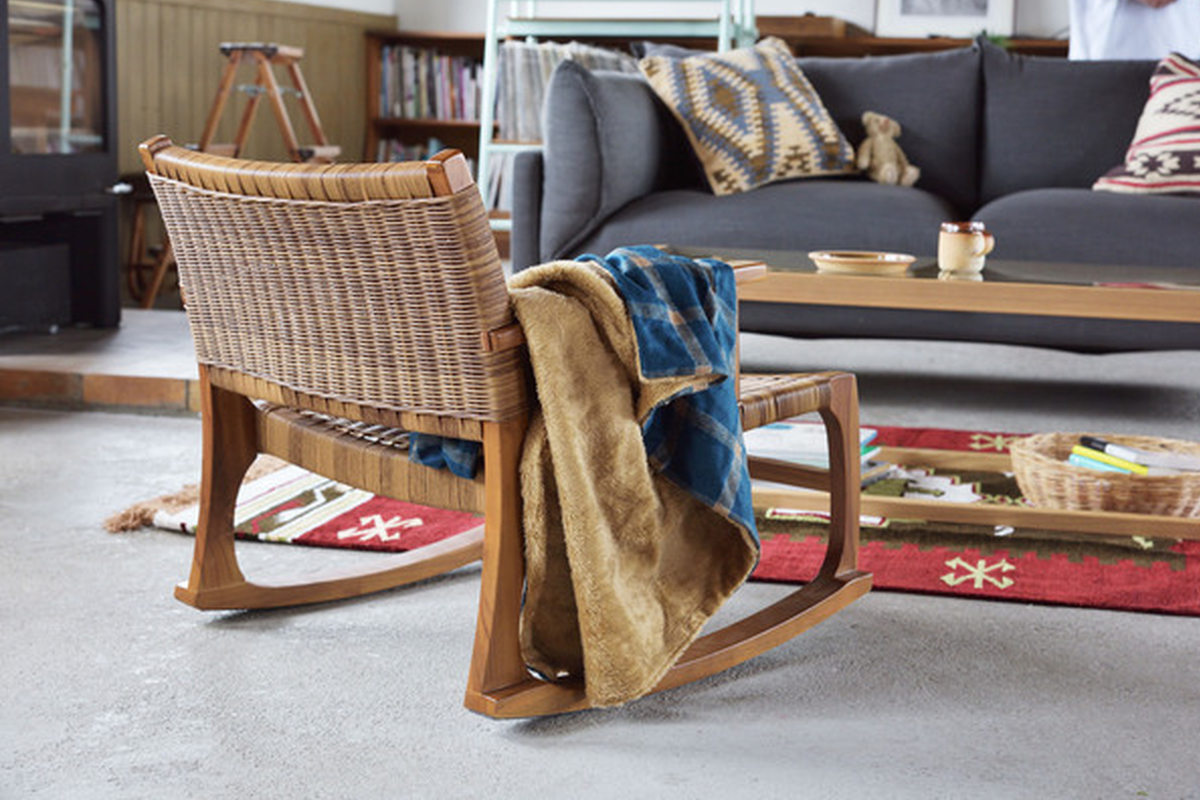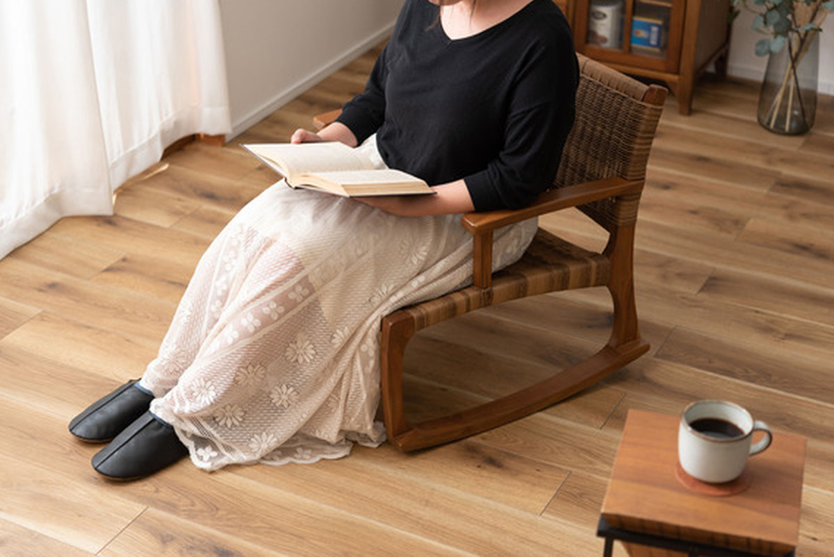 ゆったりとした座面でくつろぎの時間を楽しめる、ロッキングチェアです。心地よいロッキング機能付きで、お家でのリラックスタイム、読書やティータイムにゆったりとくつろげます。