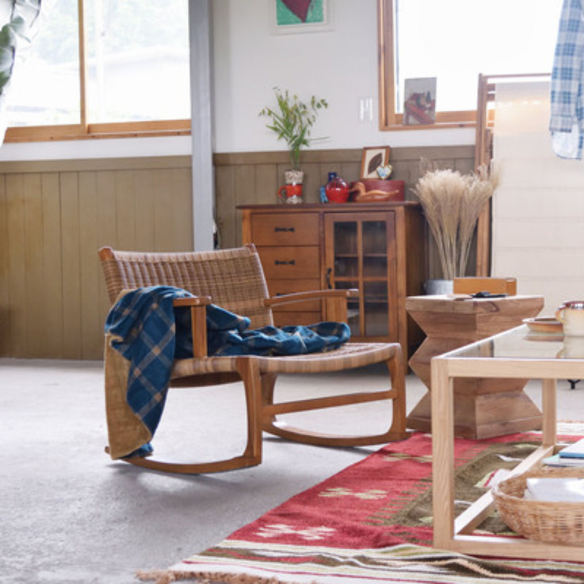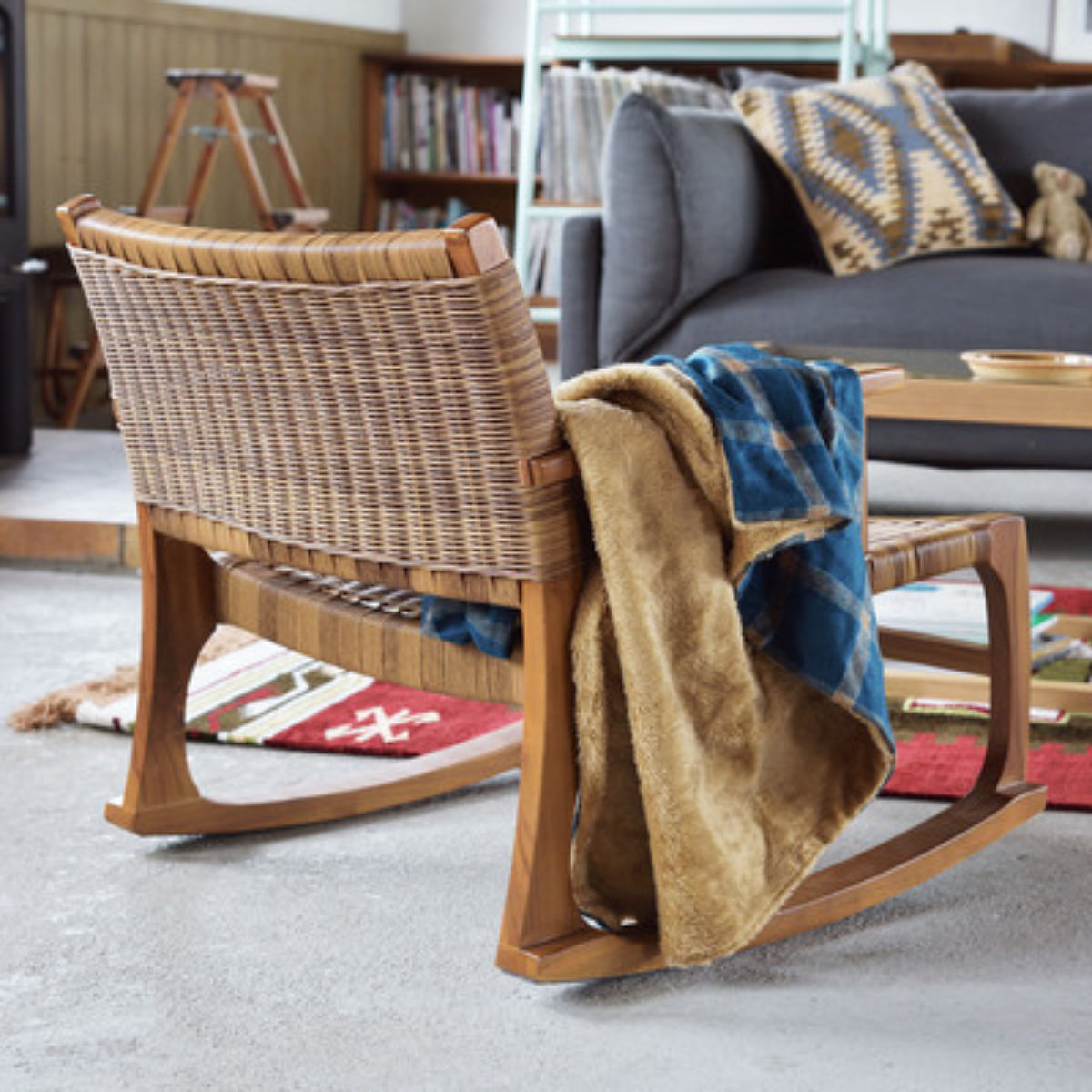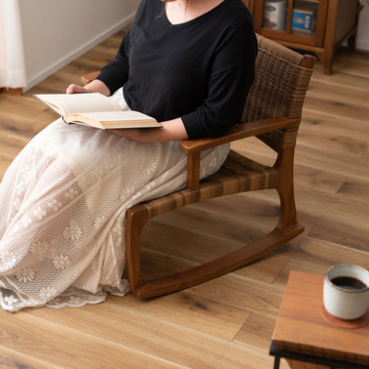 ゆったりとした座面でくつろぎの時間を楽しめる、ロッキングチェアです。心地よいロッキング機能付きで、お家でのリラックスタイム、読書やティータイムにゆったりとくつろげます。