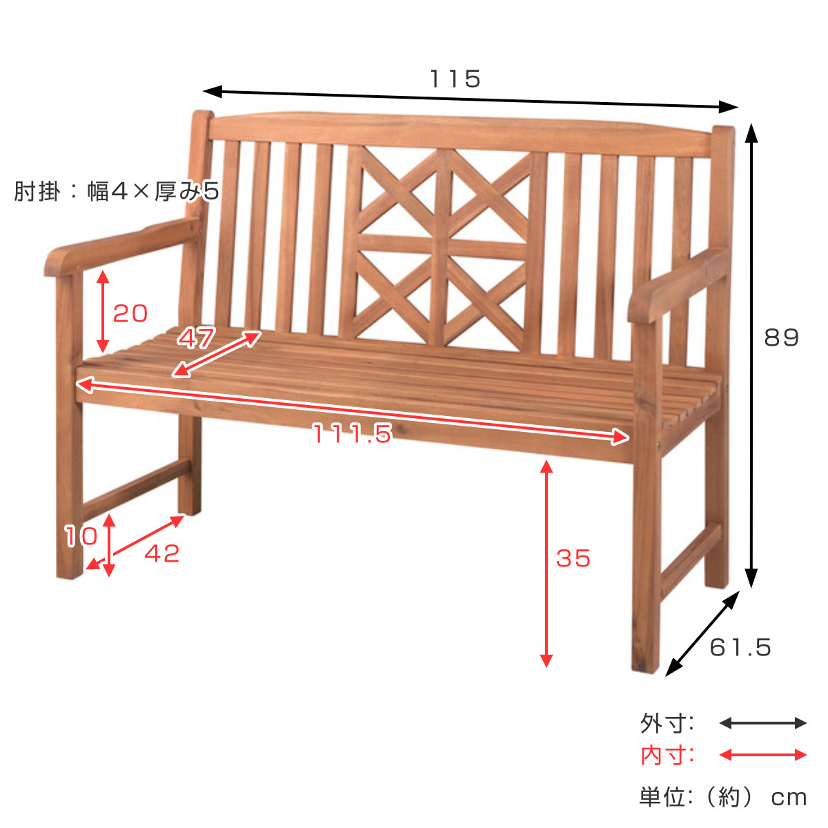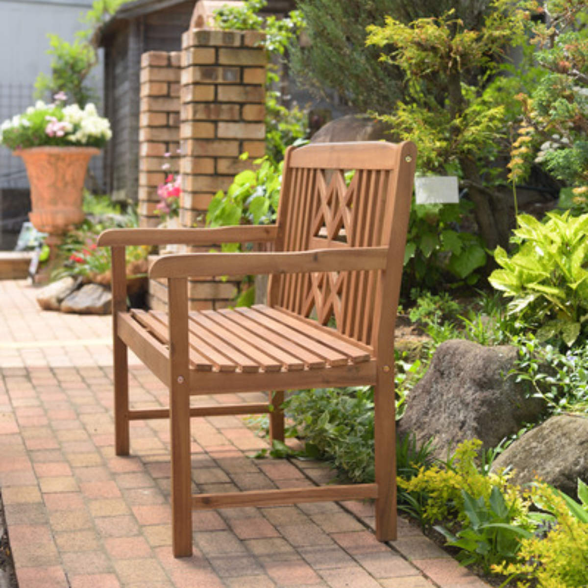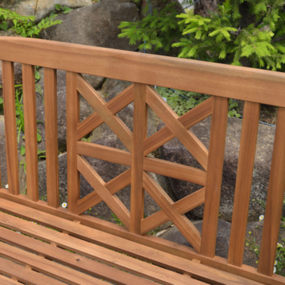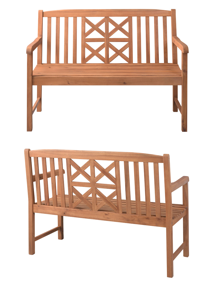 ナチュラルな風合いとシンプルデザインで、お庭やバルコニーの空間に馴染む2人掛けベンチです。天然木ならではの木の温もりと使い込むほどに増す味わいが、リラックスタイムをより心地よく演出します。