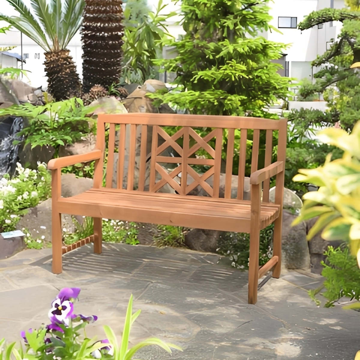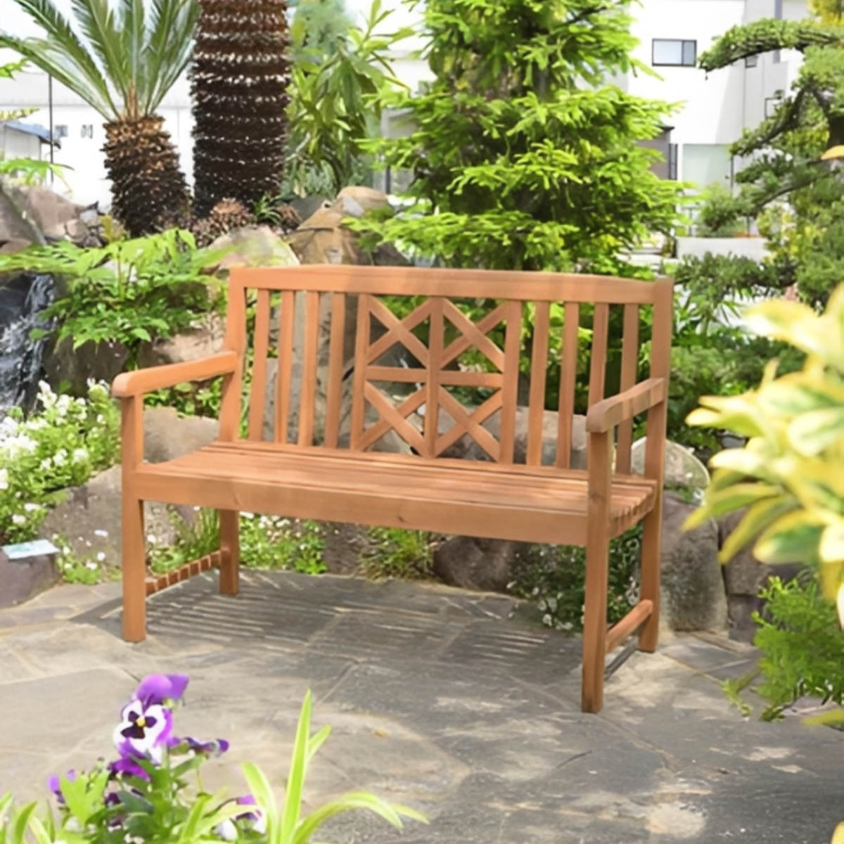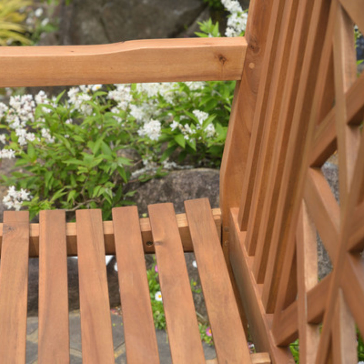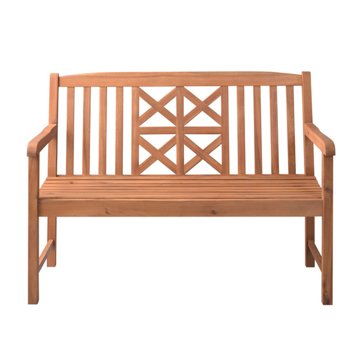 ナチュラルな風合いとシンプルデザインで、お庭やバルコニーの空間に馴染む2人掛けベンチです。天然木ならではの木の温もりと使い込むほどに増す味わいが、リラックスタイムをより心地よく演出します。