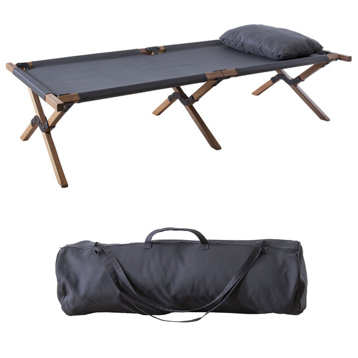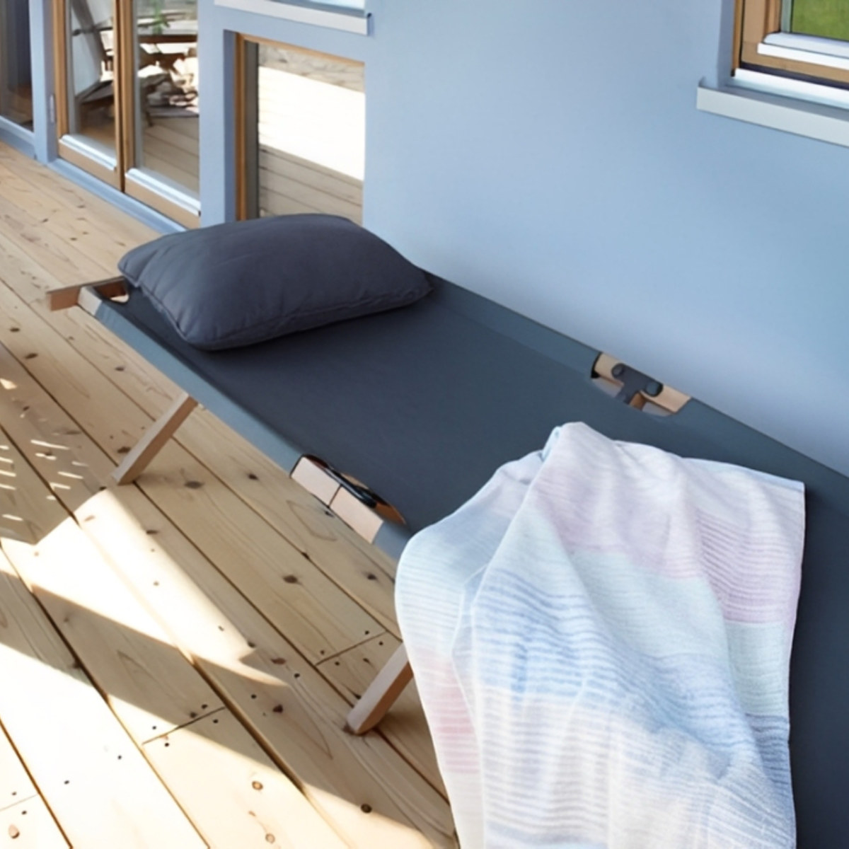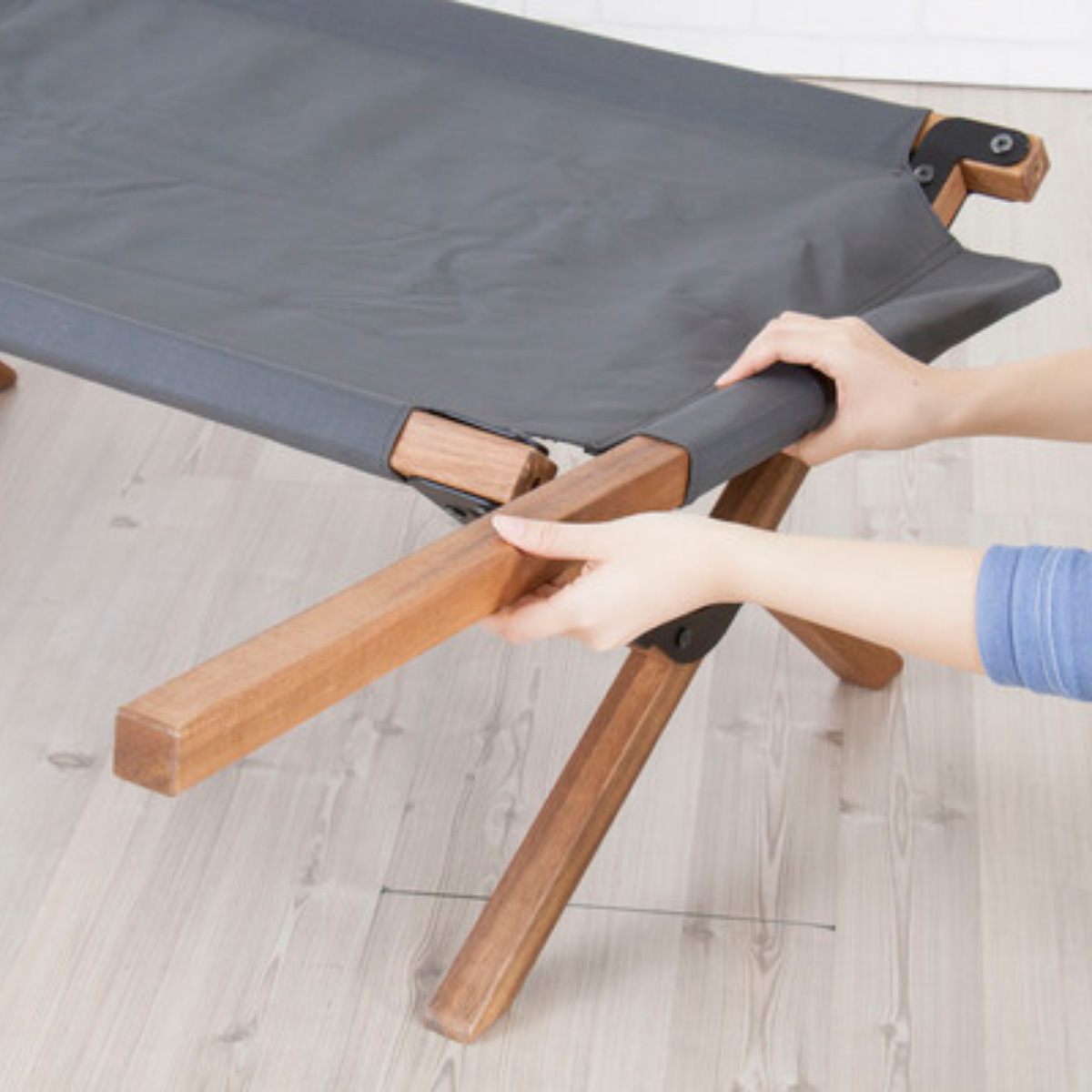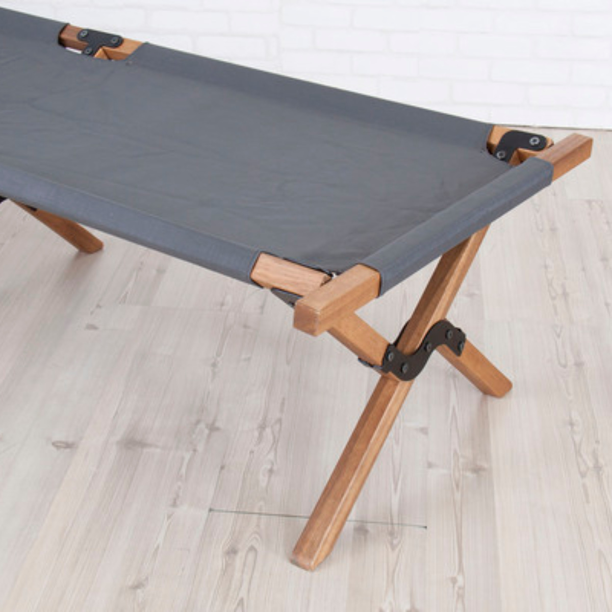 ベランダやバルコニー、ウッドデッキ、キャンプなど屋内外問わず使える、折りたたみ式フォールディングベッドです。天然木の温もりを感じられるナチュラルデザインで、インテリアにも自然にも馴染みます。