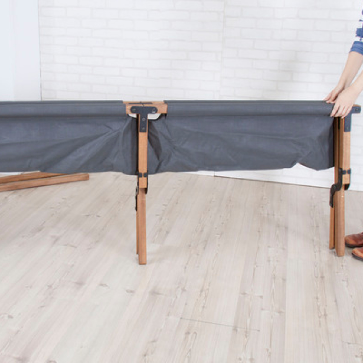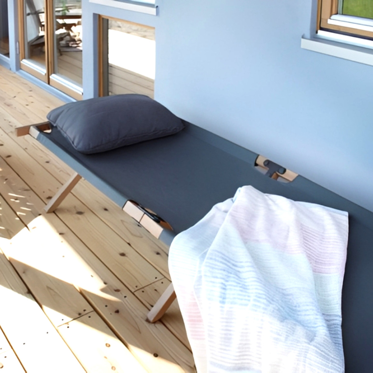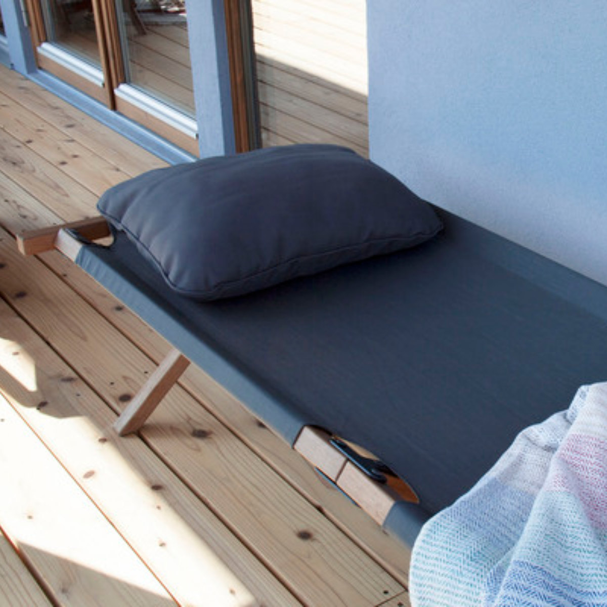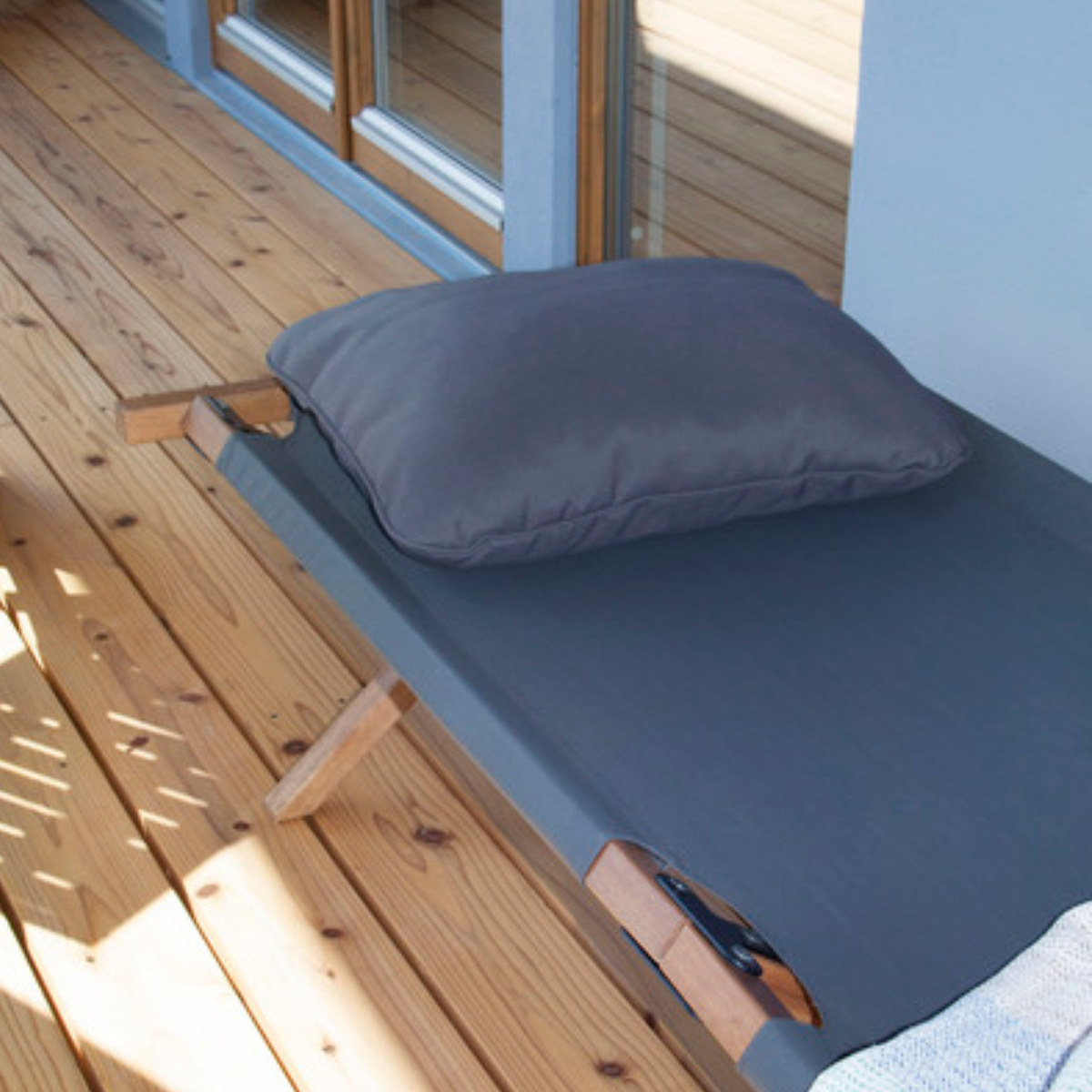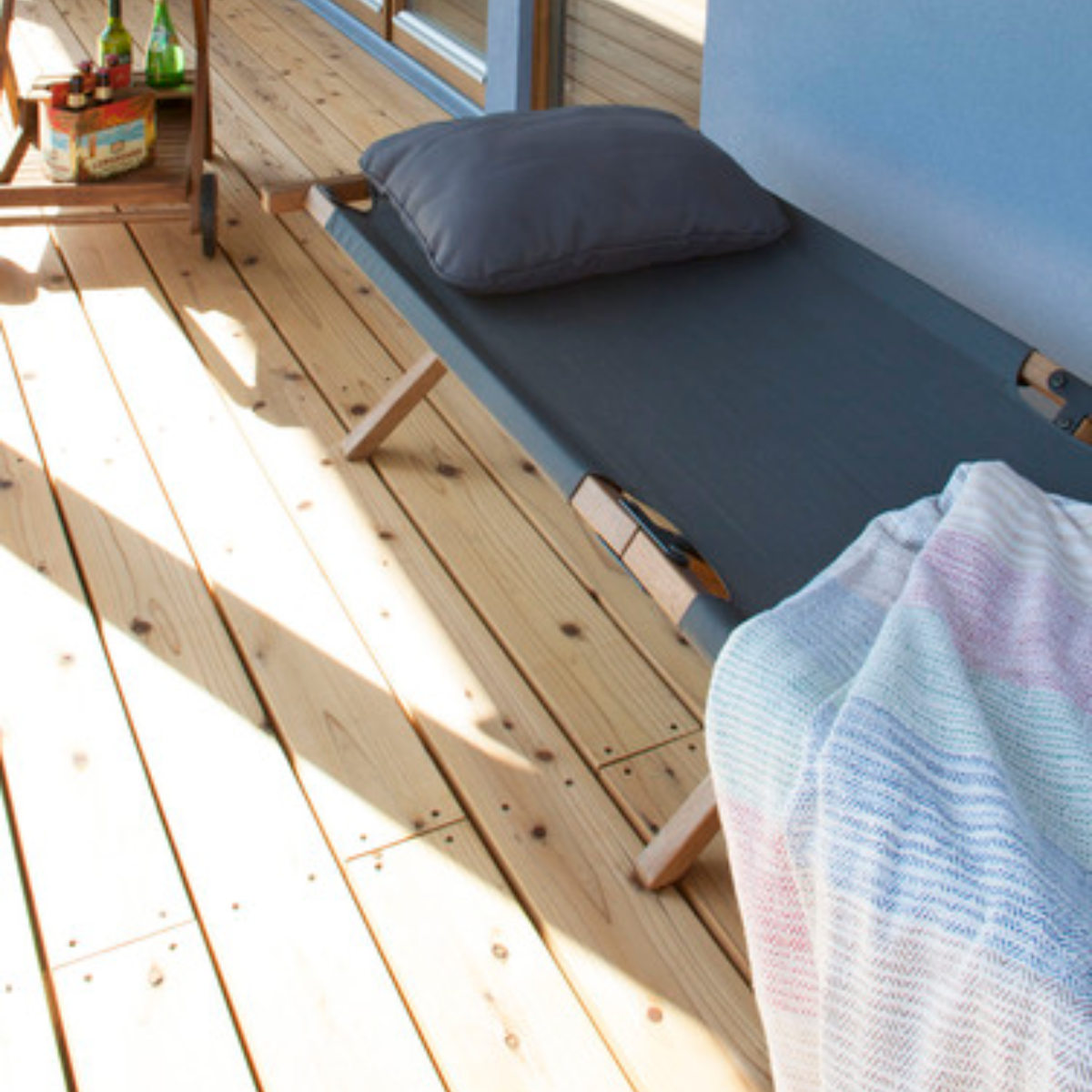 ベランダやバルコニー、ウッドデッキ、キャンプなど屋内外問わず使える、折りたたみ式フォールディングベッドです。天然木の温もりを感じられるナチュラルデザインで、インテリアにも自然にも馴染みます。