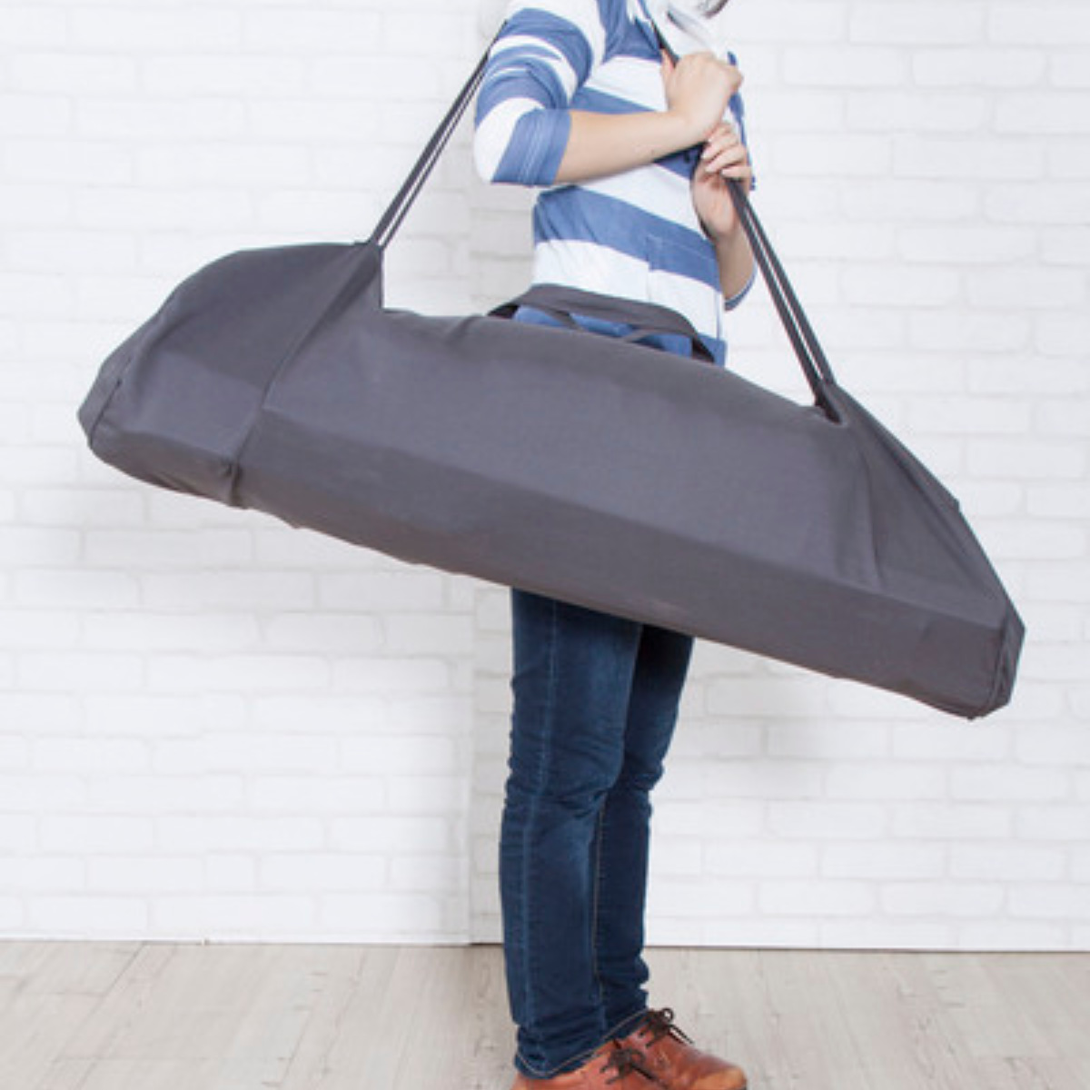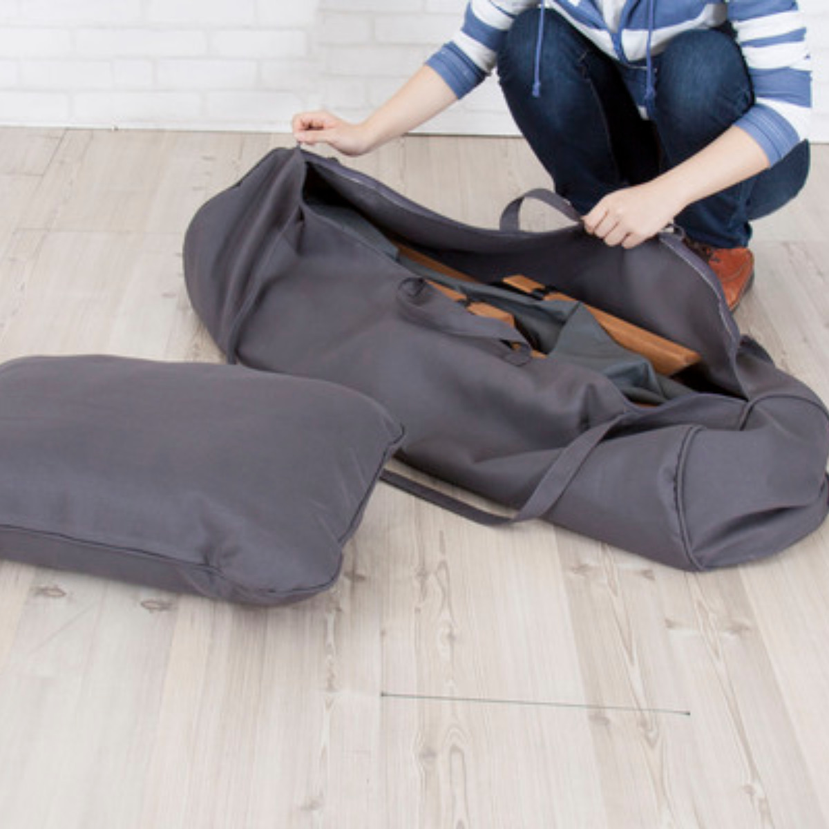 使わないときは折りたたんで省スペースに収納できます。収納袋付きで持ち運びもラクなので、キャンプやアウトドアにも最適です。