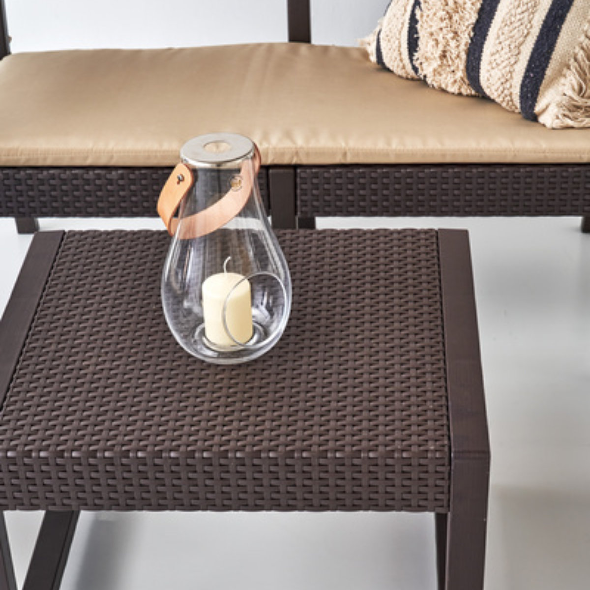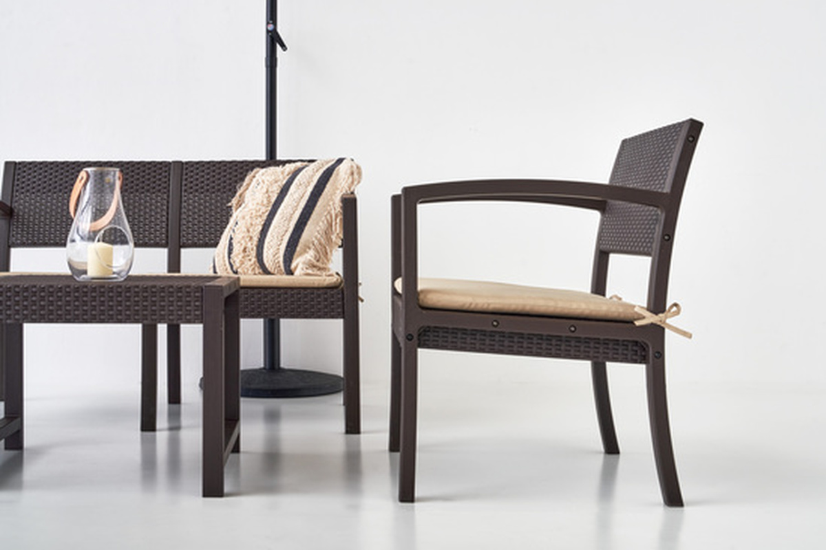 ブラウンカラーでお庭やテラスに馴染みやすく、シンプルでリゾート感のあるデザイン。屋外のくつろぎ空間をおしゃれに演出します。