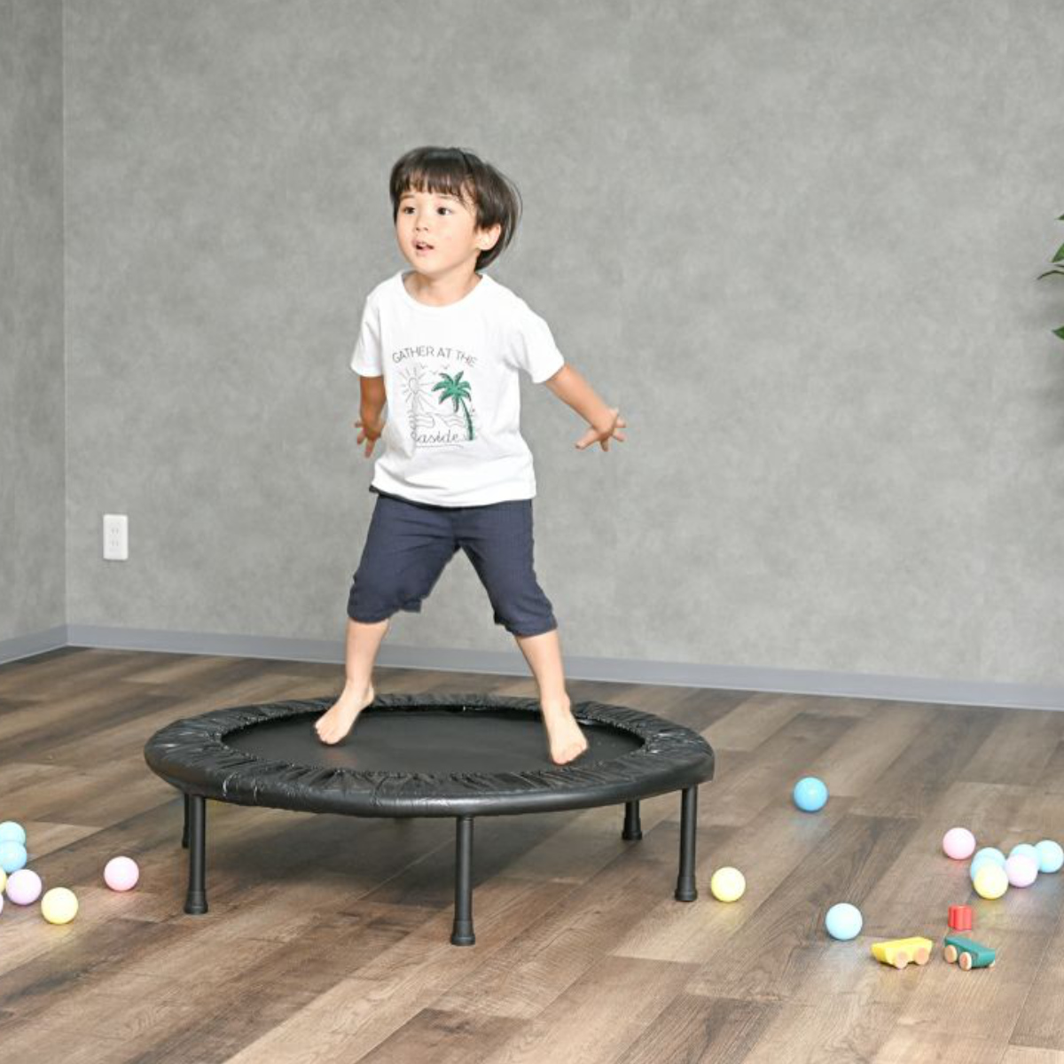 天候に左右されず、好きなタイミングで体を動かせます。雨の日や外遊びが難しい日でも、室内で元気にジャンプするとたまったエネルギーやストレスの発散にもぴったりです。ジャンプする動きが、バランス感覚や体幹を自然に刺激。飛び跳ねるだけで気分転換になり、テンションもアップ。家族みんなで楽しめる運動アイテムです。