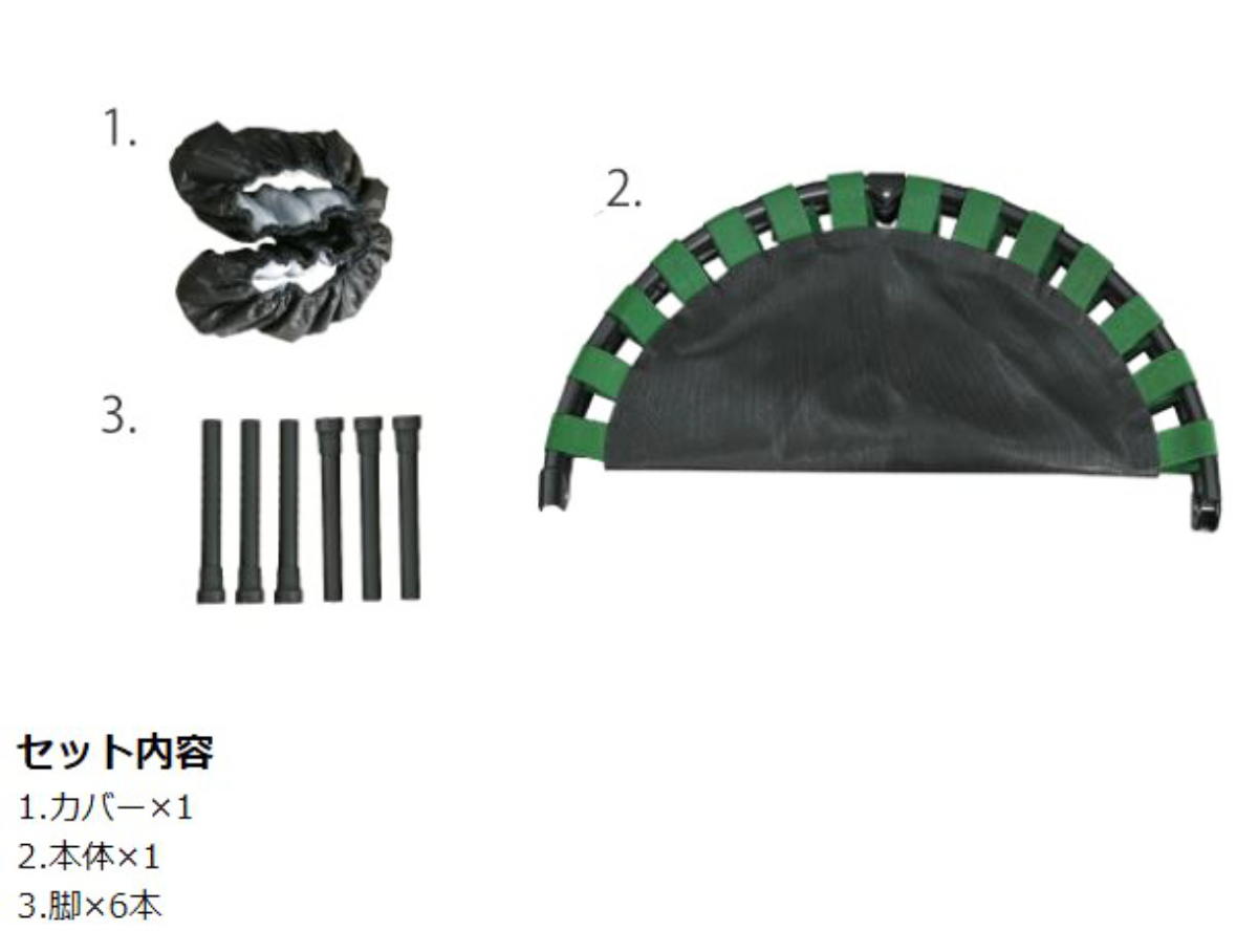 | 材質 | 帯:ゴム フレーム:スチール カバー:PVC マット:PP 脚:スチール 脚カバー:合成ゴム |
