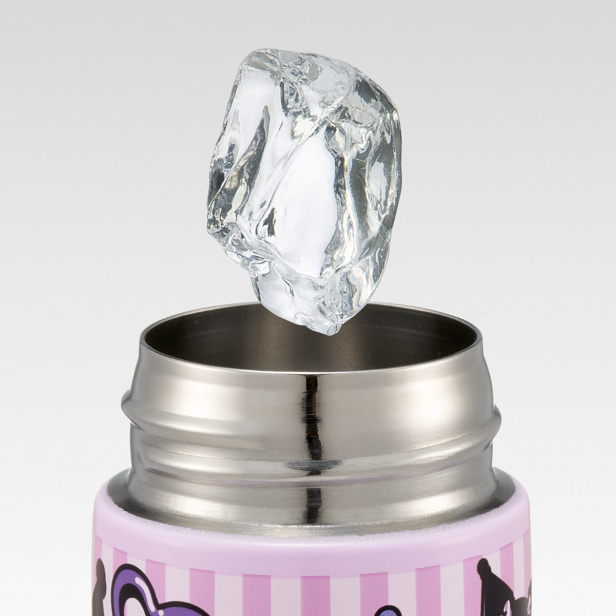 水筒の口は広口なので大きな氷も入れやすくなっています。また、洗う時もしっかり洗えて衛生的です。