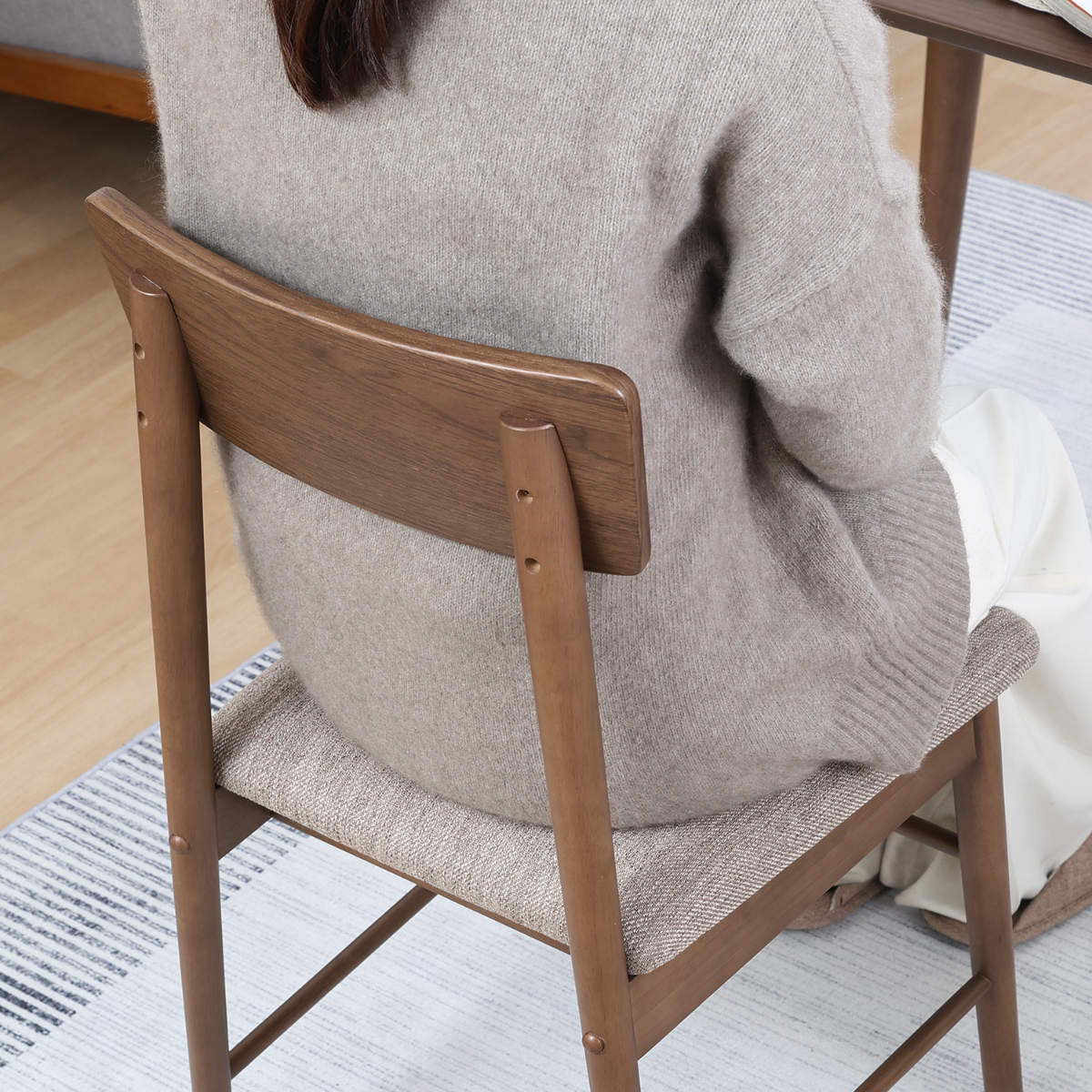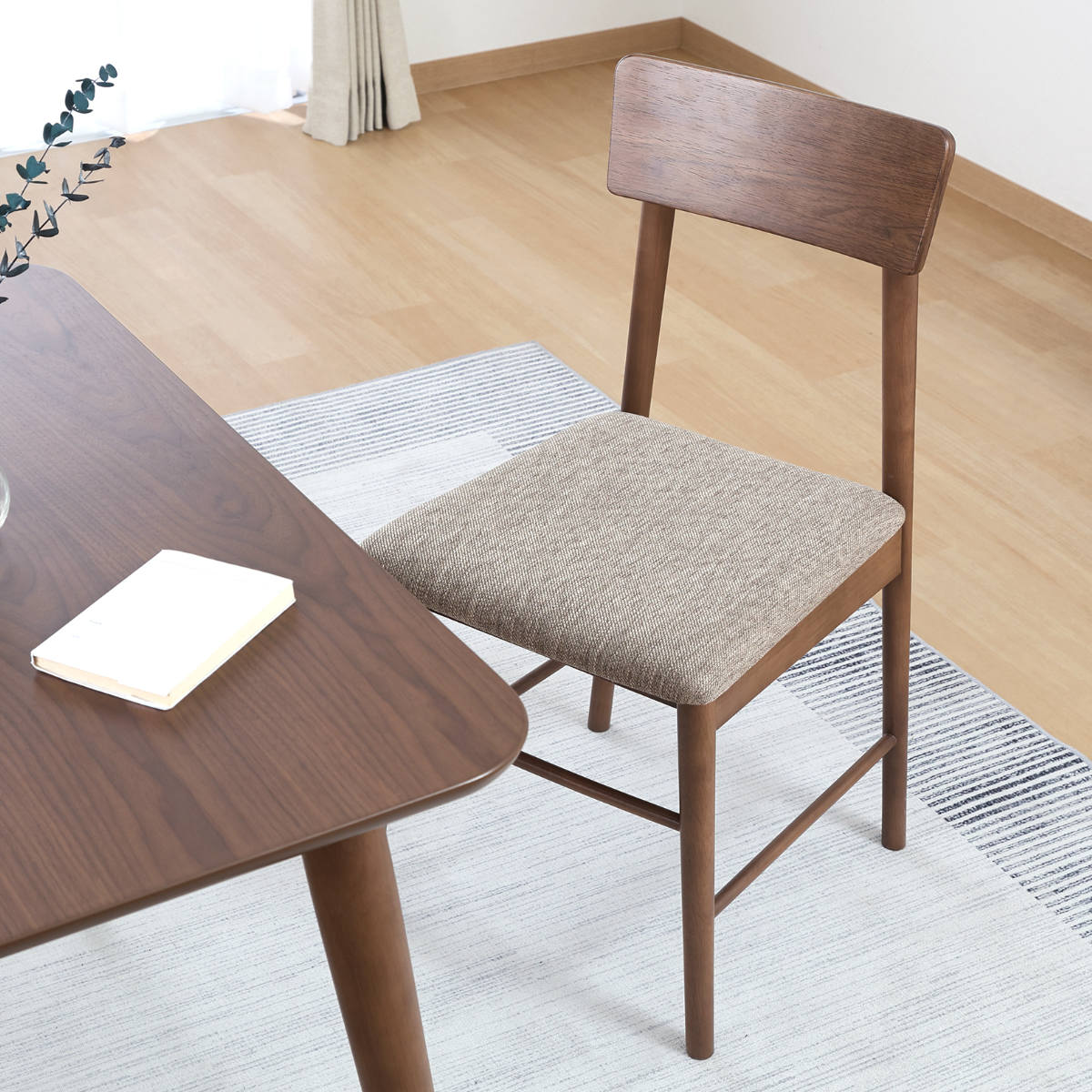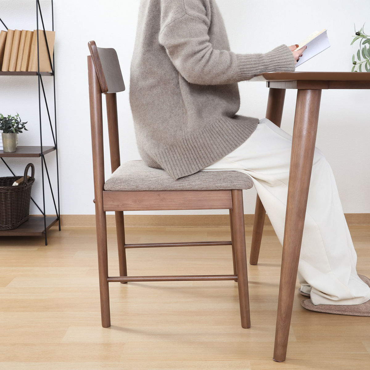 フレームに天然木を使用した、木の温もりを感じられるチェア。お部屋に自然と馴染むだけでなく、安定感のあるつくりで毎日の食事やくつろぎ時間を快適に支えます。