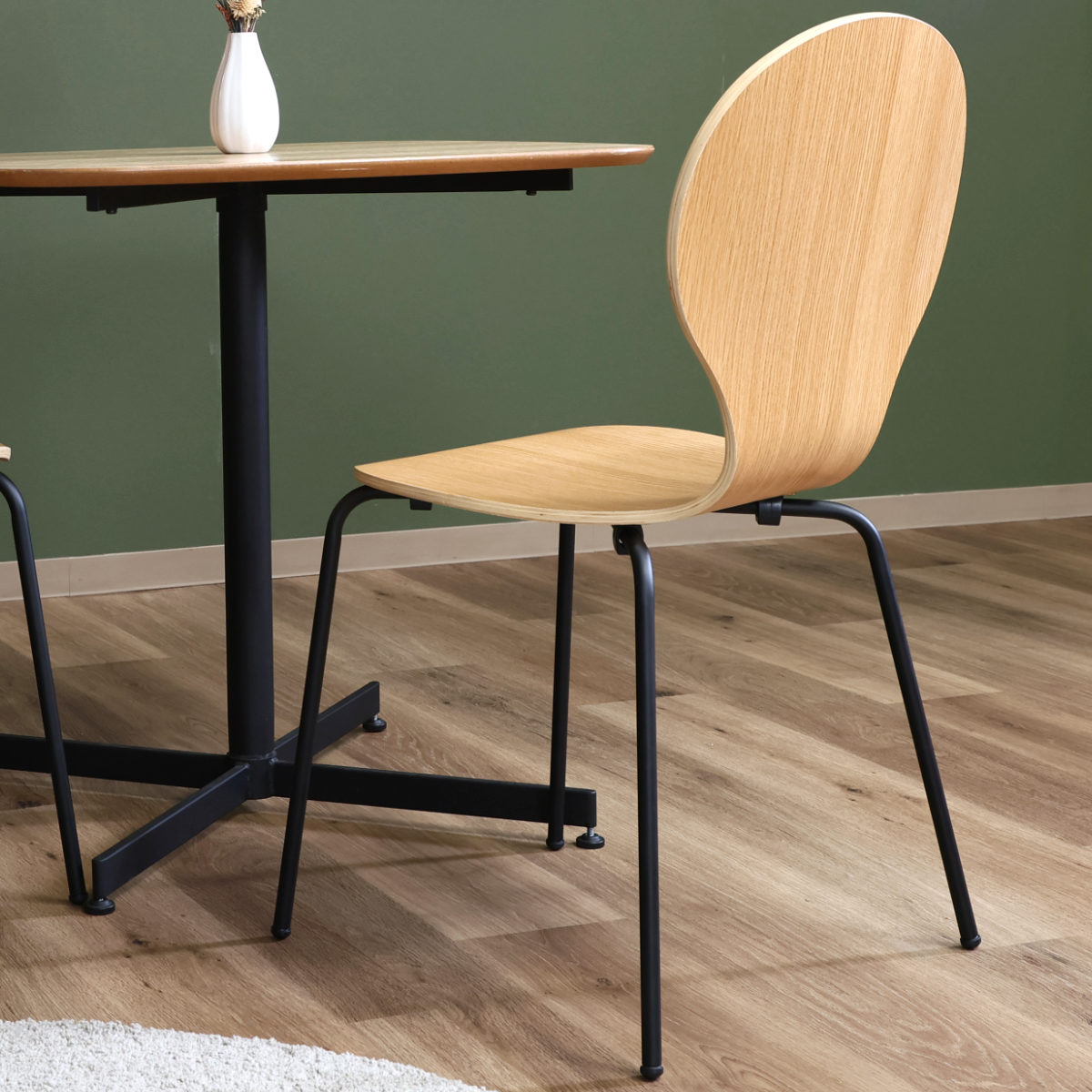 軽量設計で動かしやすく、立ち座りもスムーズ。座面高45cmのため、ダイニングにもデスクにも合わせやすく、食事から作業まで幅広いシーンで快適に使えます。