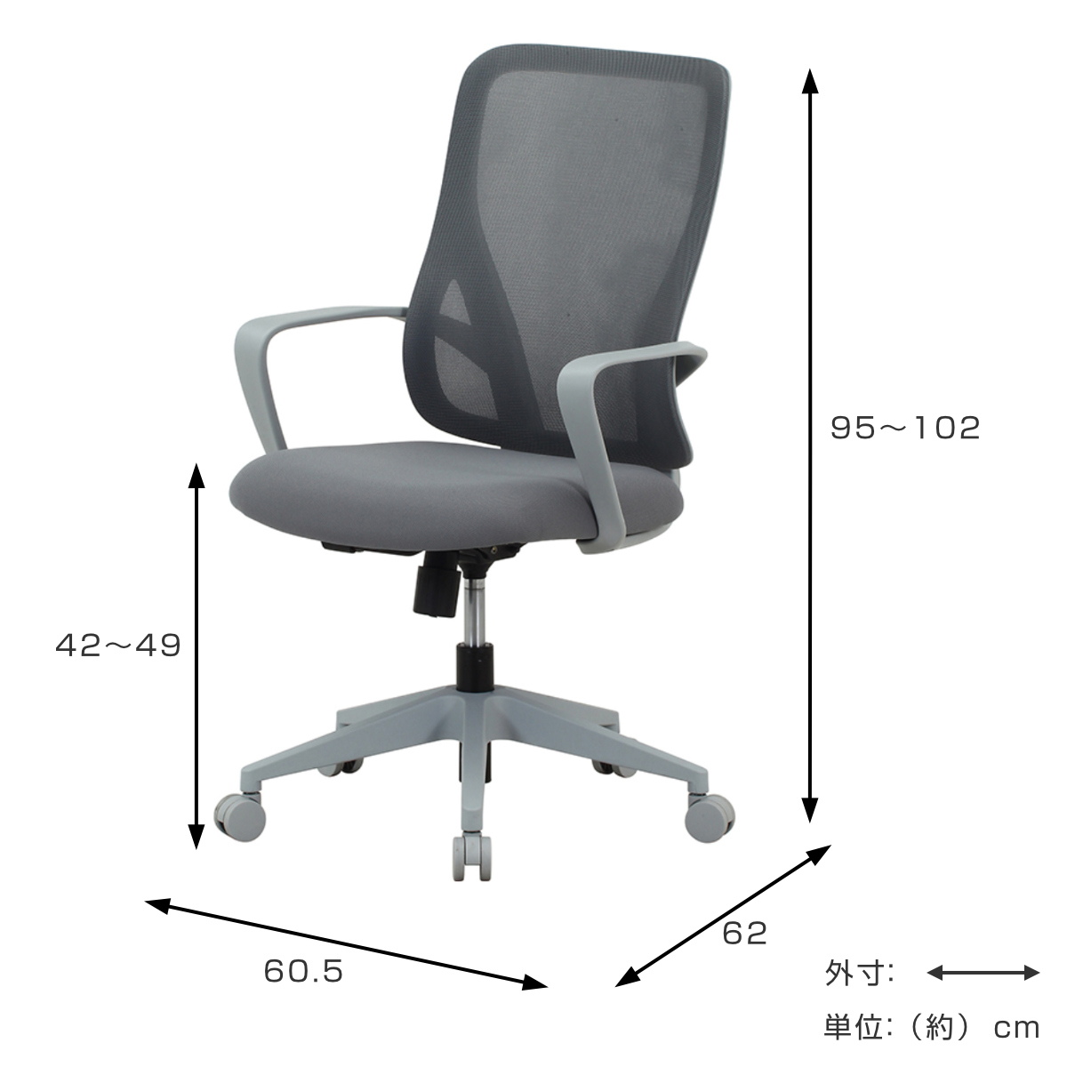 ●背もたれと座面にメッシュ素材を使用し、蒸れにくく快適な座り心地を保ちます。