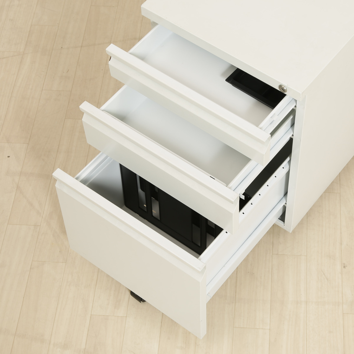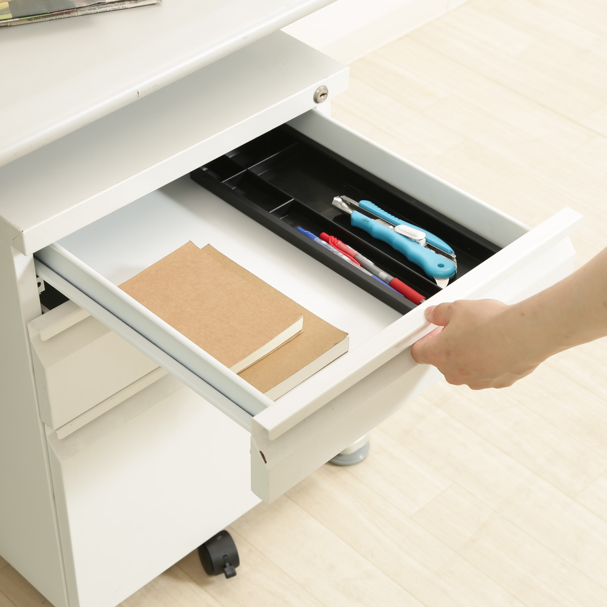 ●鍵1つで全ての引き出しをロックできます。