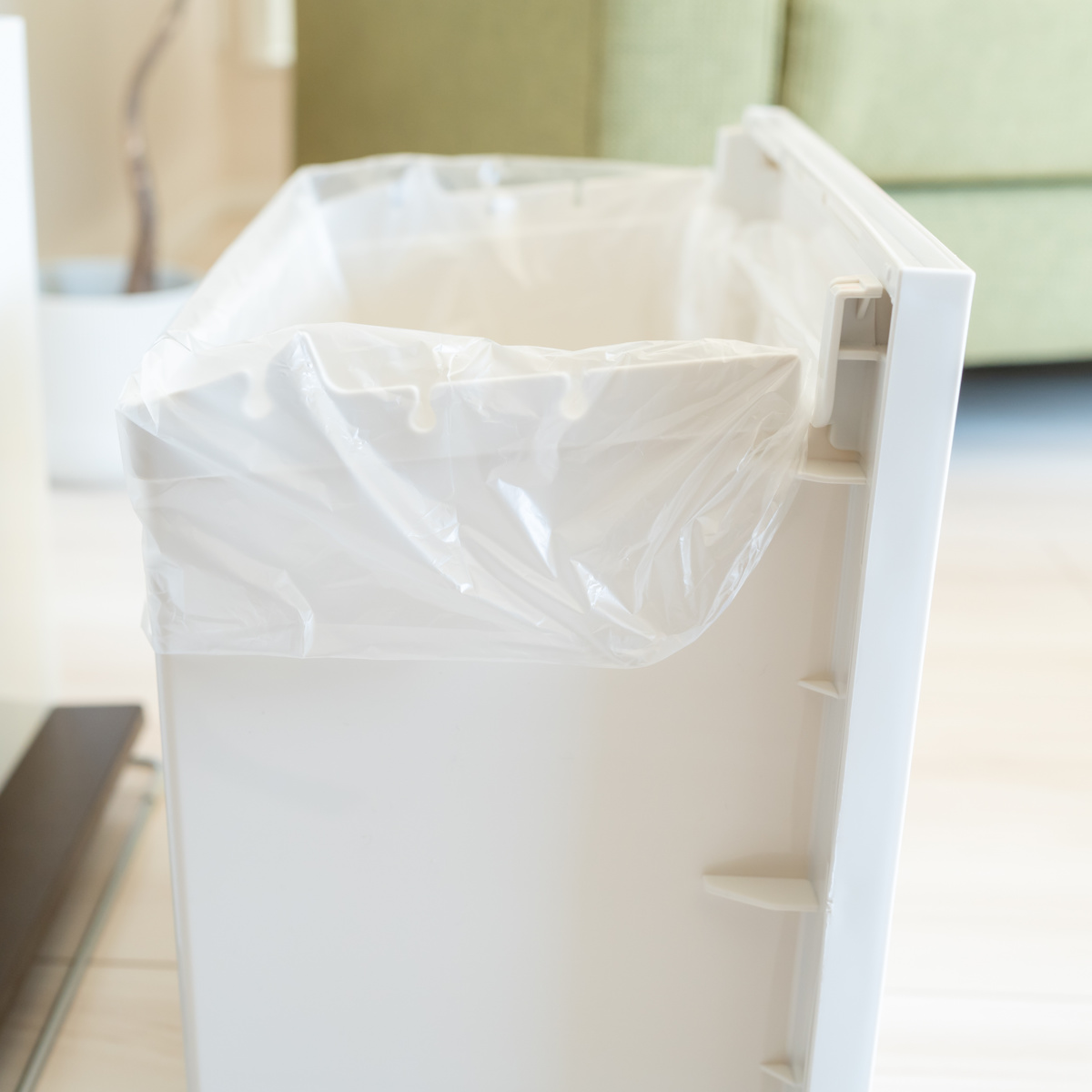 ゴミ袋はスリットにさっと掛けるだけでセットできます。外から袋が見えないため生活感を与えず、お部屋の雰囲気を損ないません。