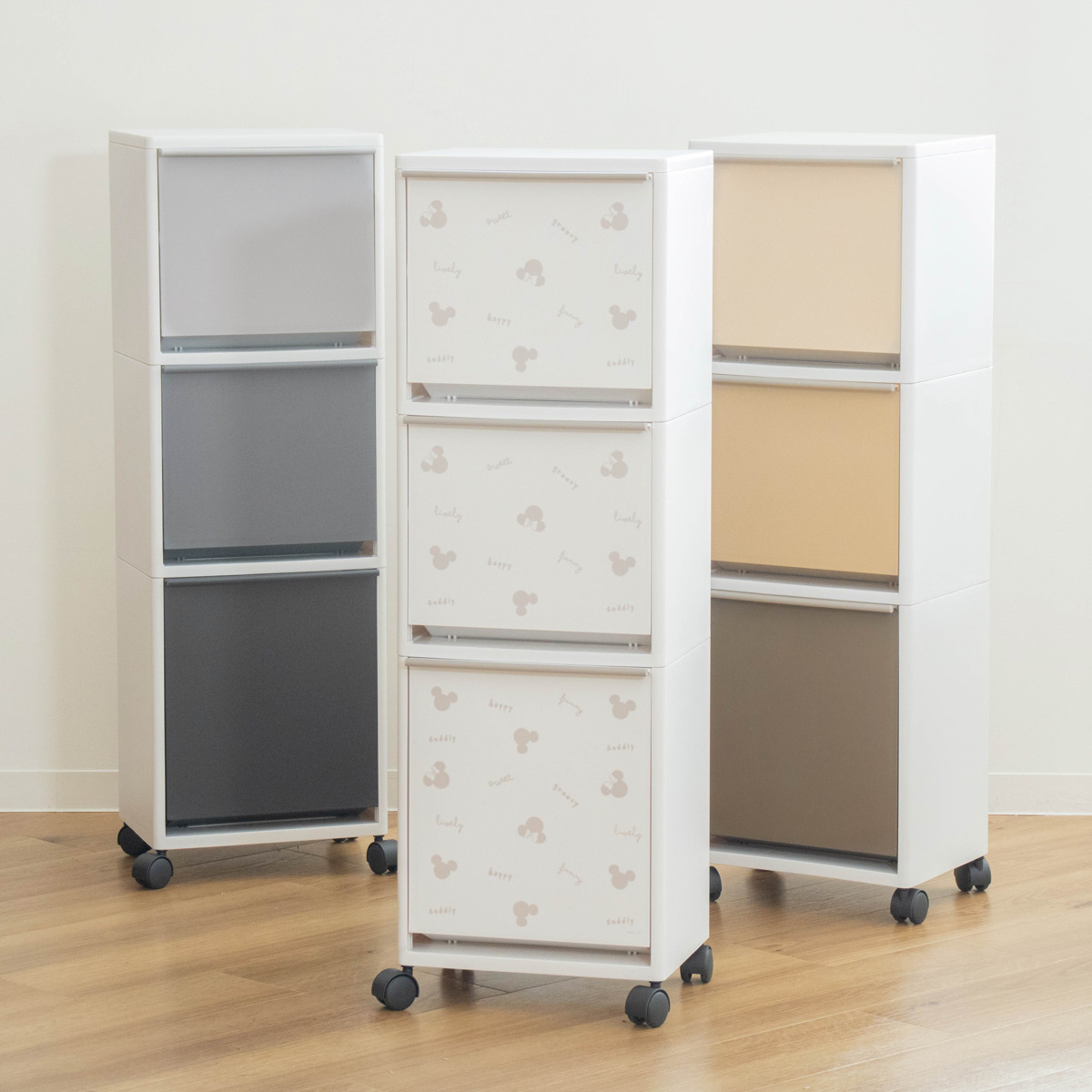 キッチンのデッドスペースに設置できる幅約33.5cmのスリムなダストボックスです。上段・中段はそれぞれ12.5L、下段は18Lで、かさばる資源ゴミもひとまとめに分別できます。