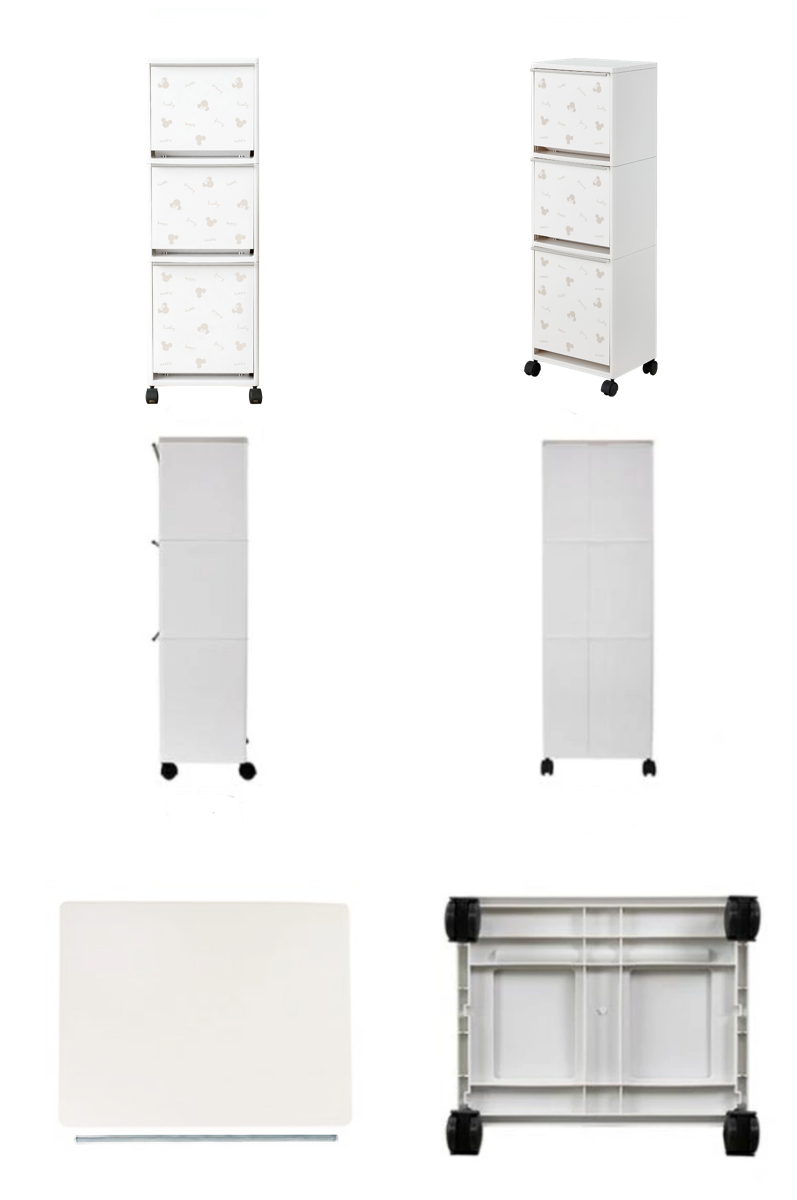 - 本体、引き出し、ポリ袋止め、天板:ポリプロピレン キャスター:PP、PA