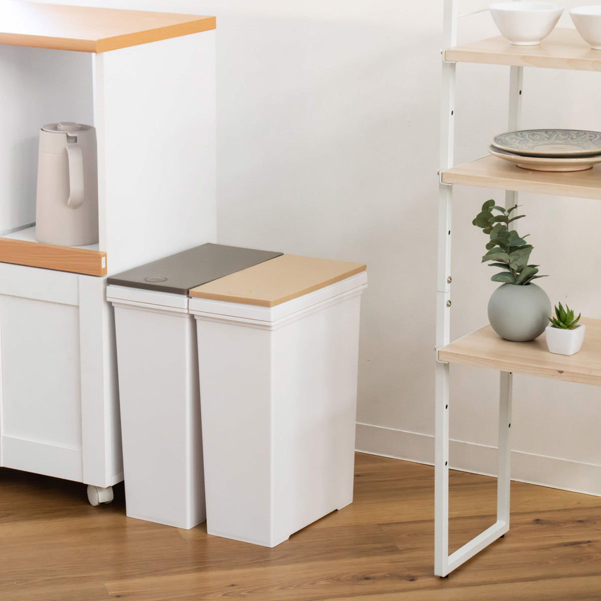 キッチンでは2分別ゴミ箱として、洗面所では1個使いとシーンに合わせた使い方ができます。単体だとコンパクトなので、通路や壁際でも邪魔にならず、隙間にフィットします。